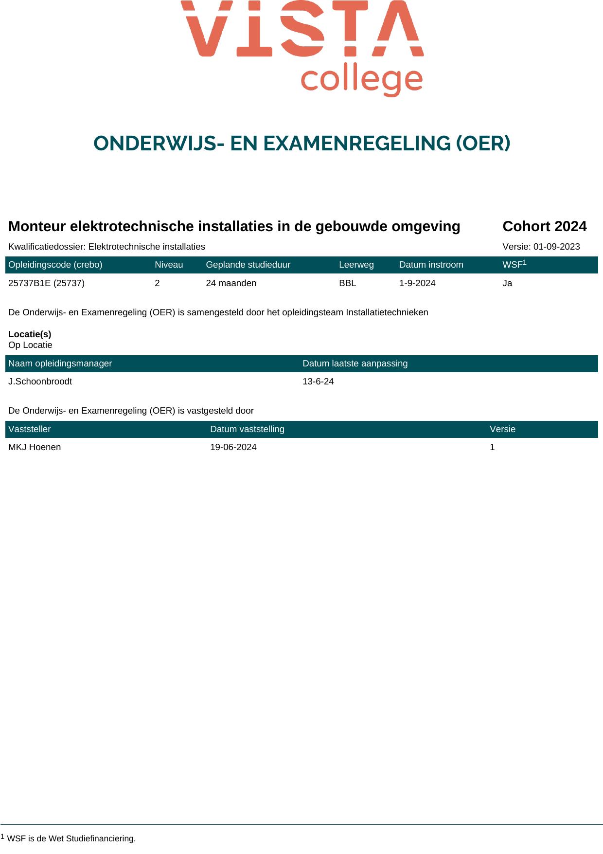 Monteur elektrotechnische installaties in de gebouwde omgeving 25737B1E in cohort 2024-2025