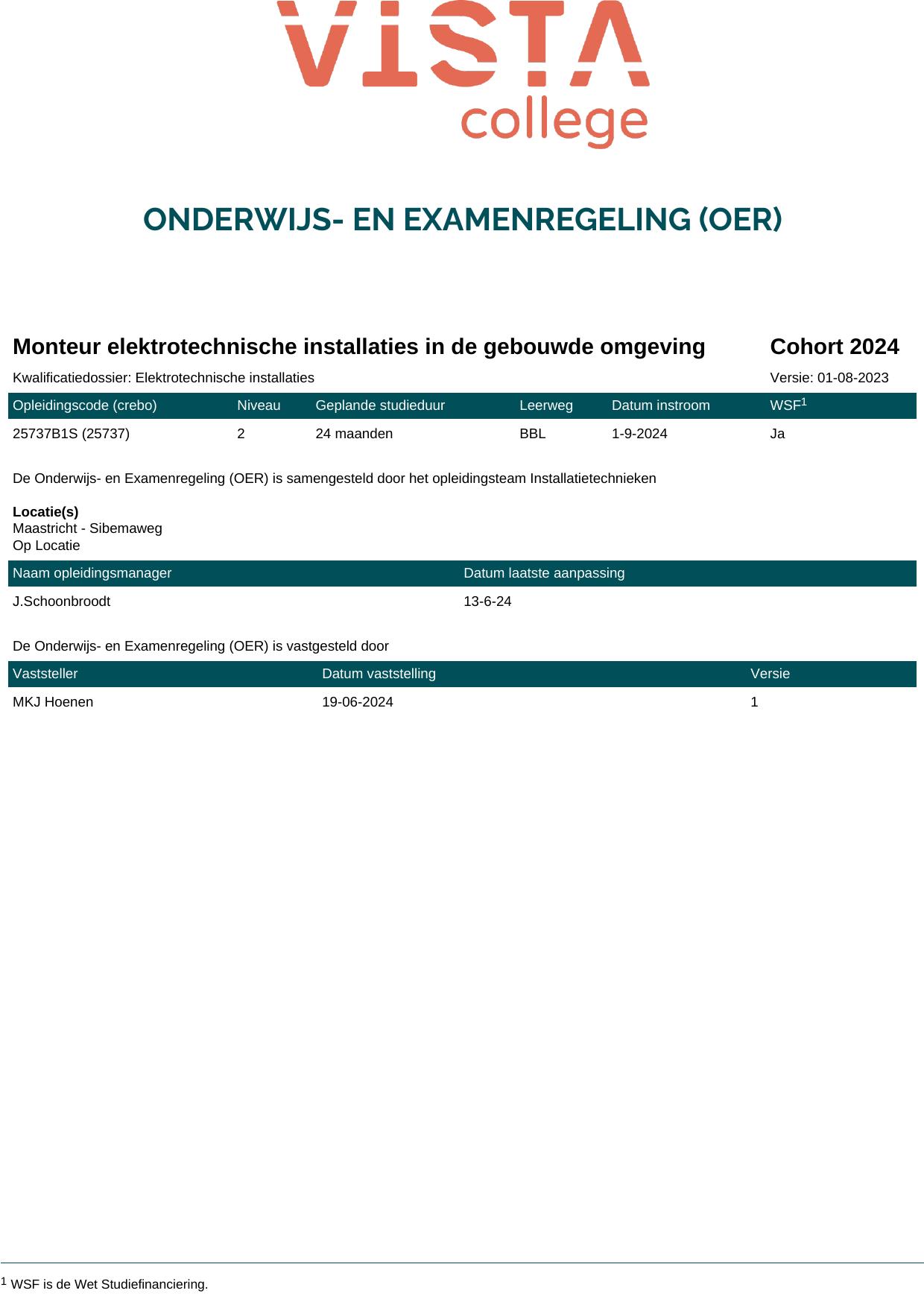 Monteur elektrotechnische installaties in de gebouwde omgeving 25737B1S in cohort 2024-2025