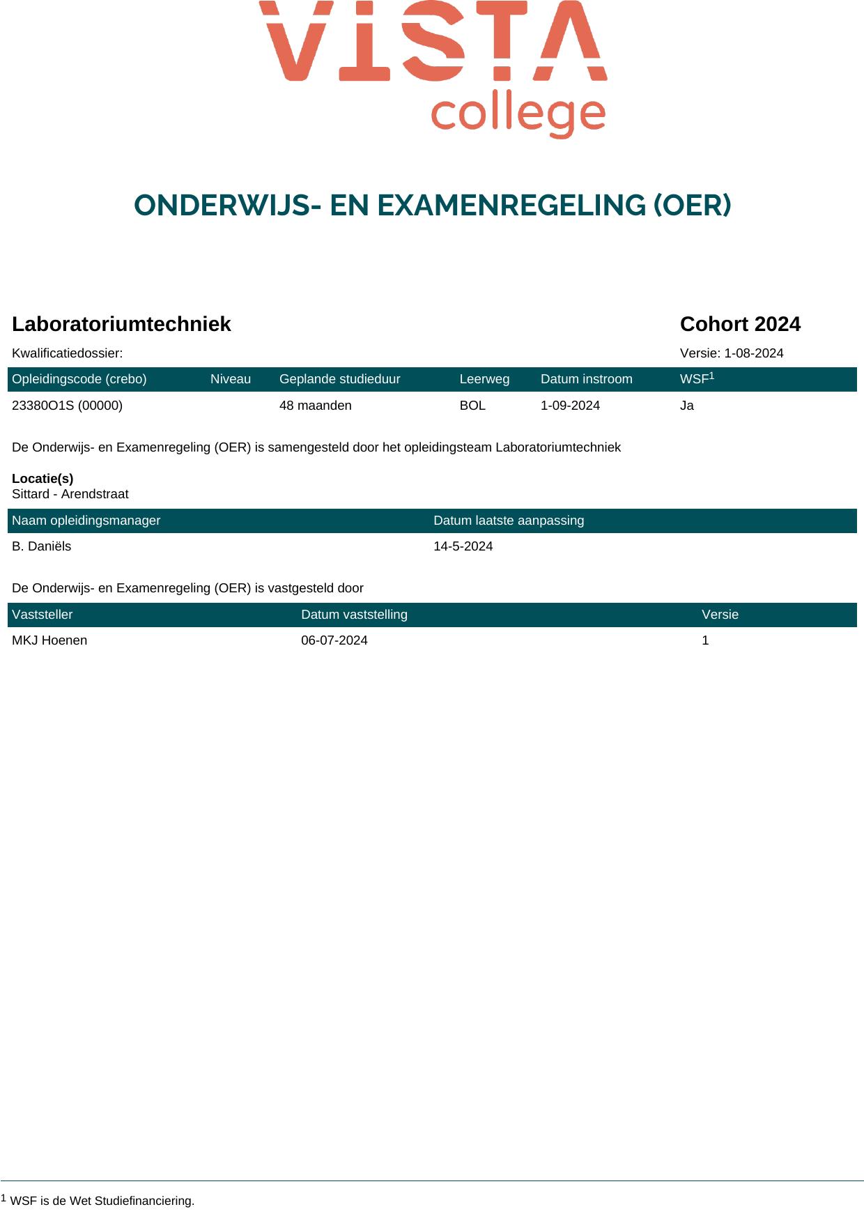 Laboratoriumtechniek 23380O1S in cohort 2024-2025