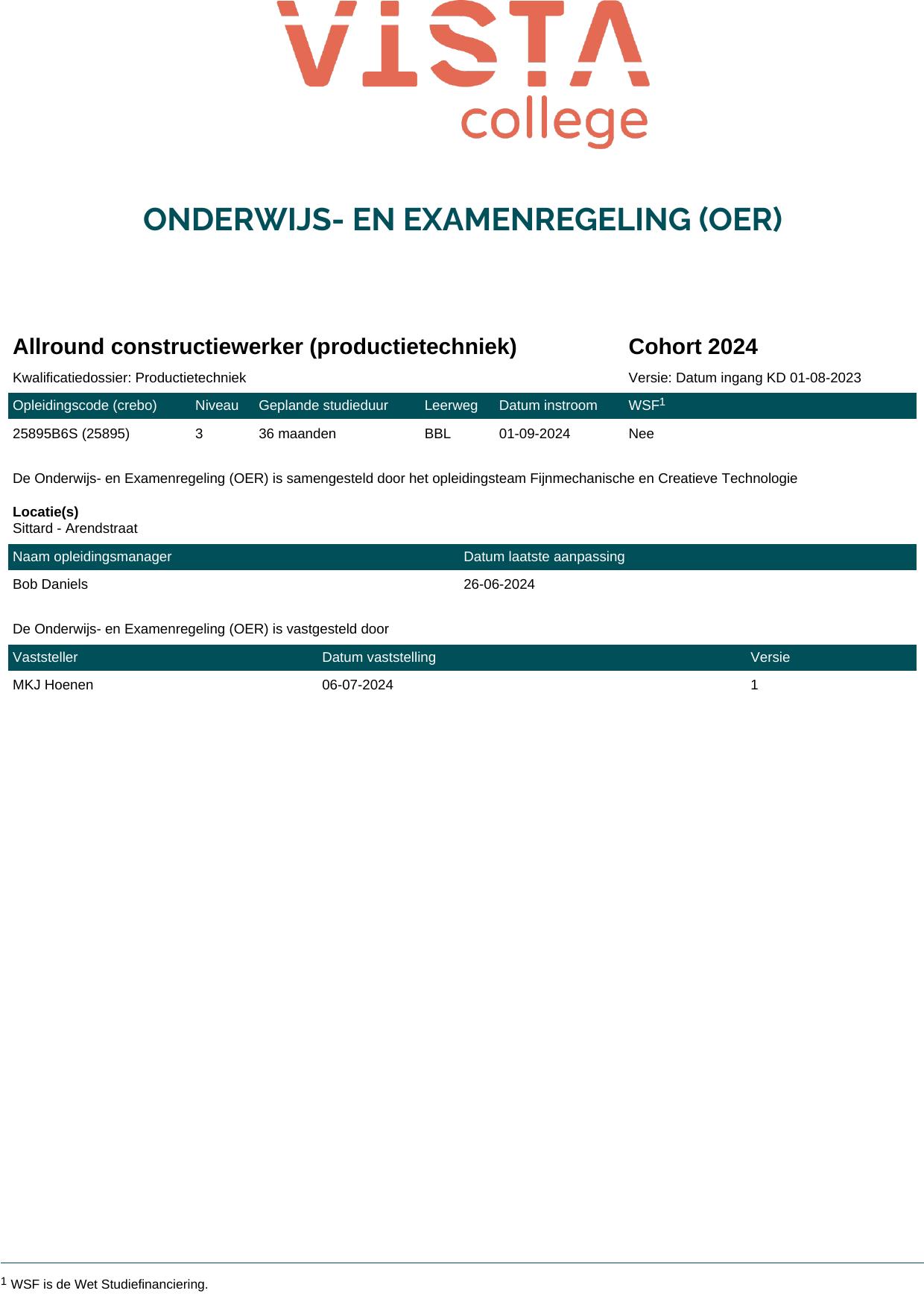 Allround constructiewerker (productietechniek) 25895B6S in cohort 2024-2025