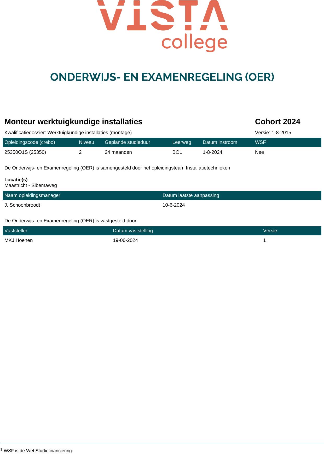 Monteur werktuigkundige installaties 25350B1S in cohort 2024-2025