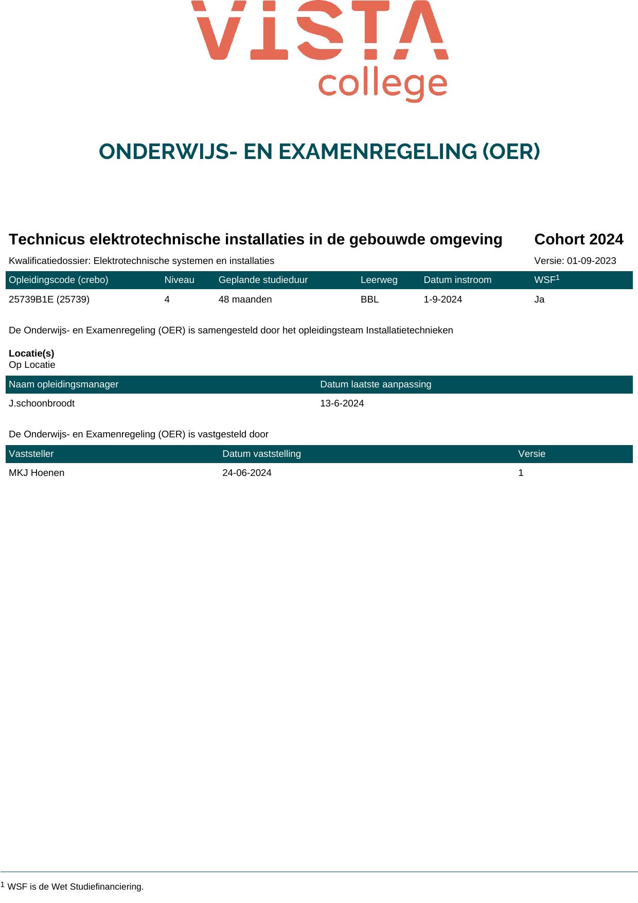 Technicus elektrotechnische installaties in de gebouwde omgeving 25739B1E in cohort 2024-2025