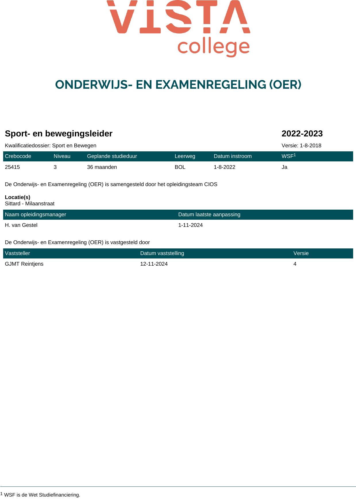 Sport- en bewegingsleider 2F25415BV3V1 in cohort 2022-2023