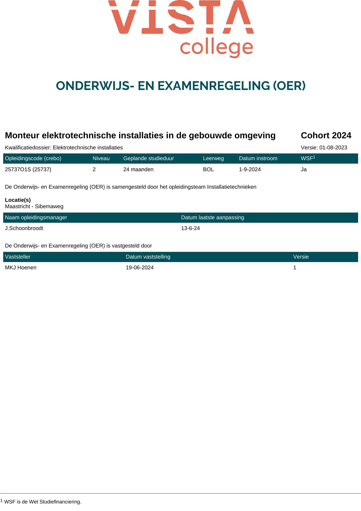 Monteur elektrotechnische installaties in de gebouwde omgeving 25737O1S in cohort 2024-2025