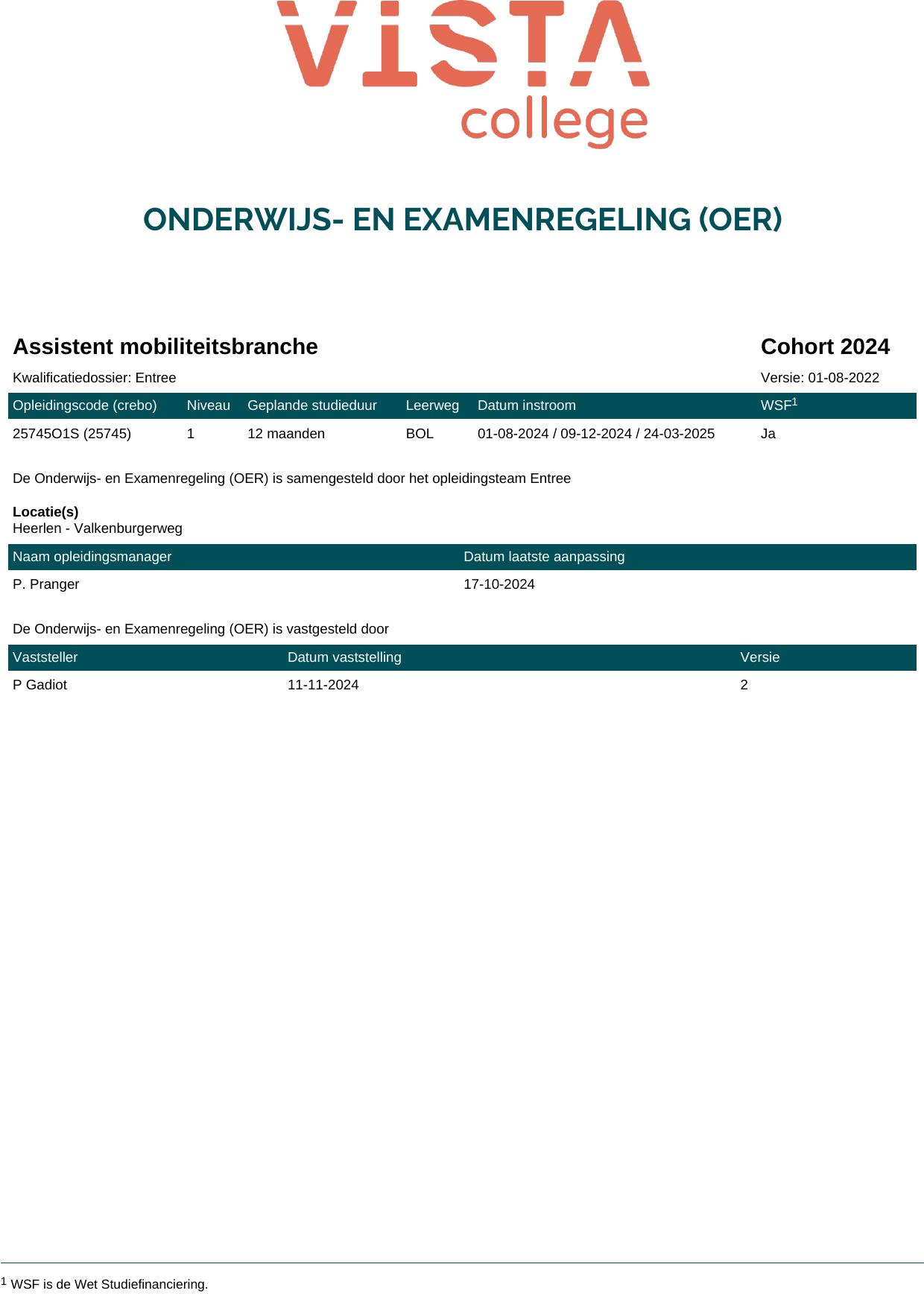 Assistent mobiliteitsbranche 25745O1S in cohort 2024-2025