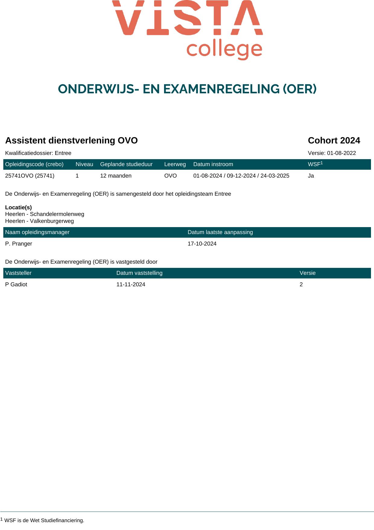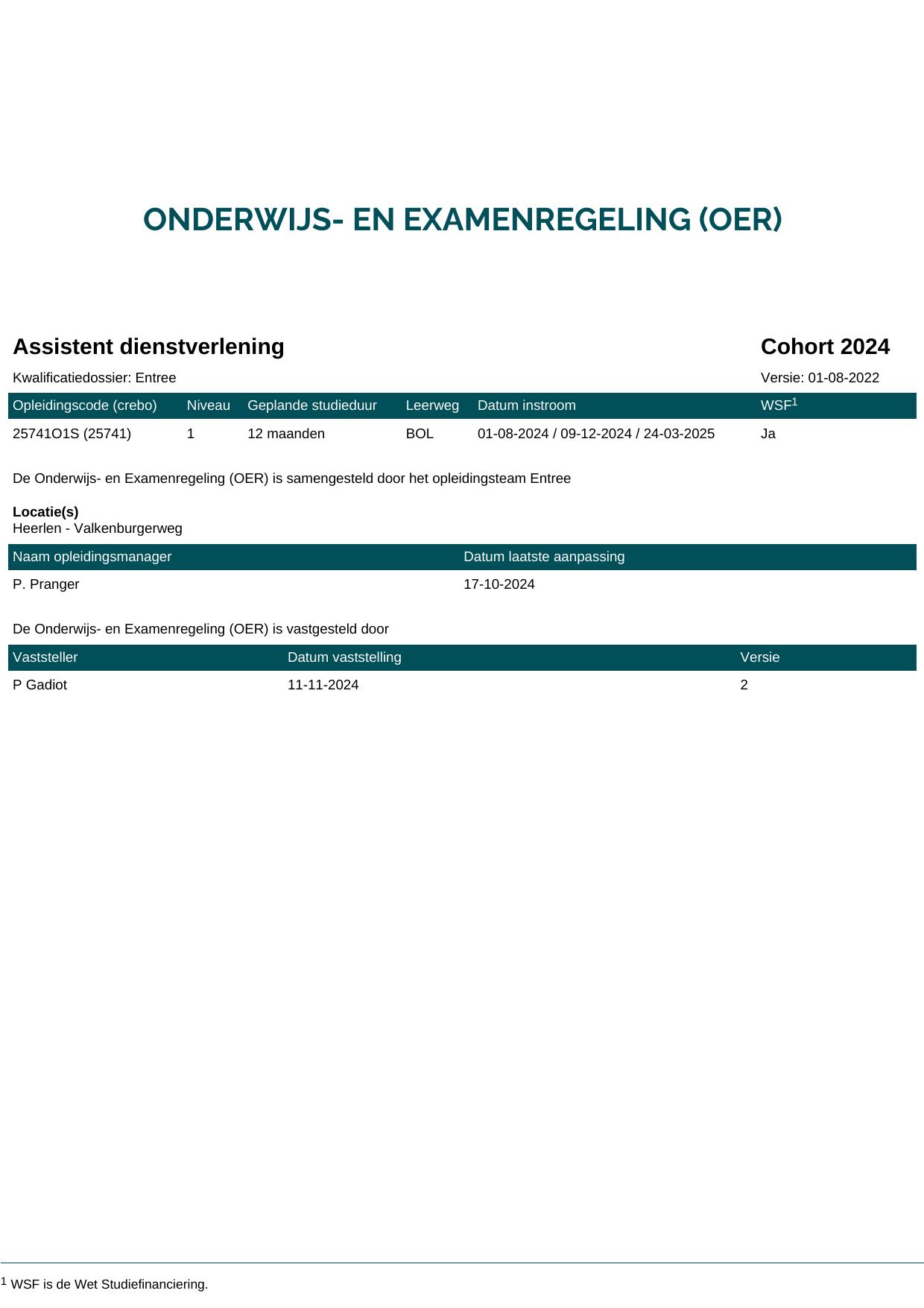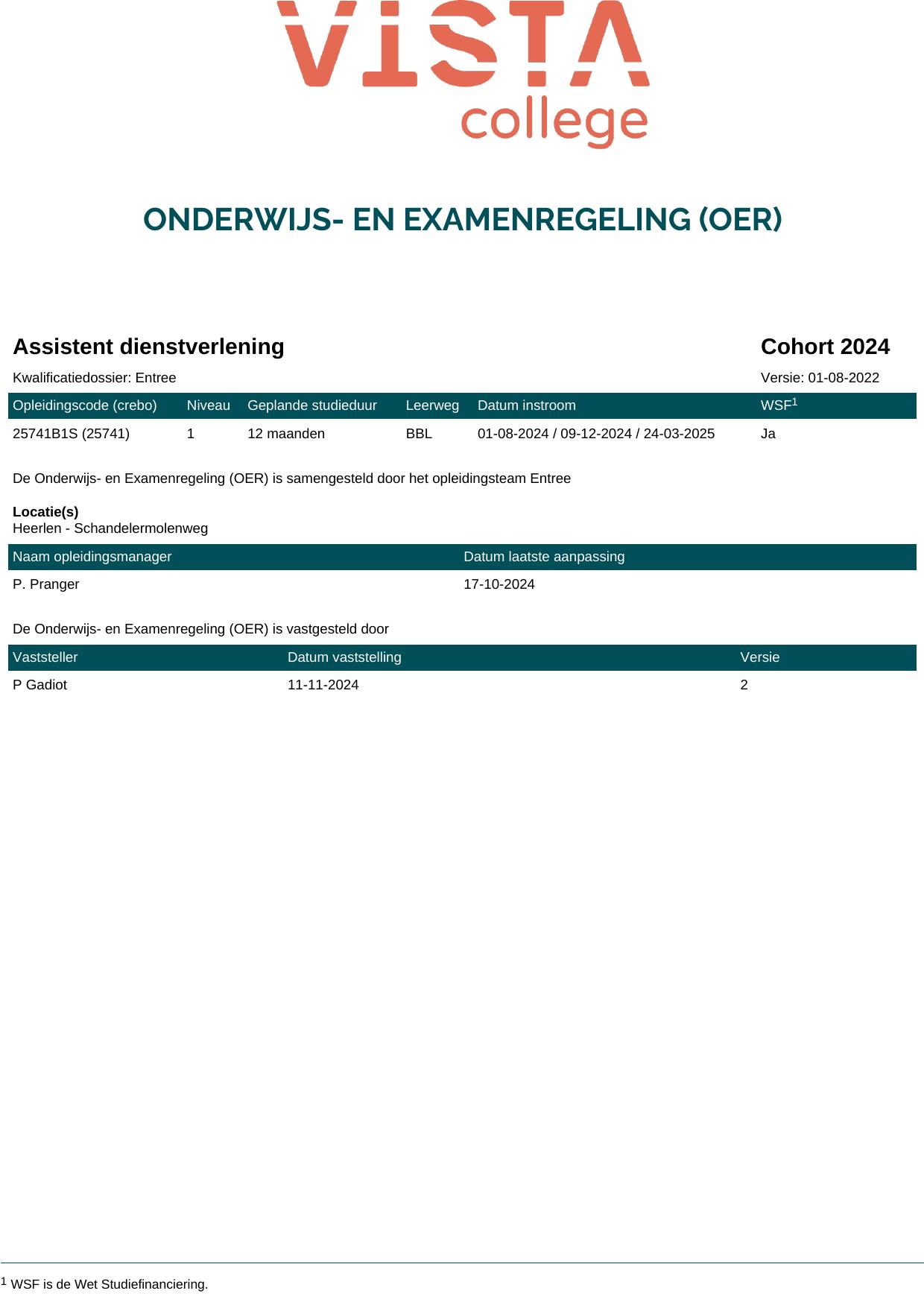 Assistent dienstverlening 25741O1S in cohort 2024-2025