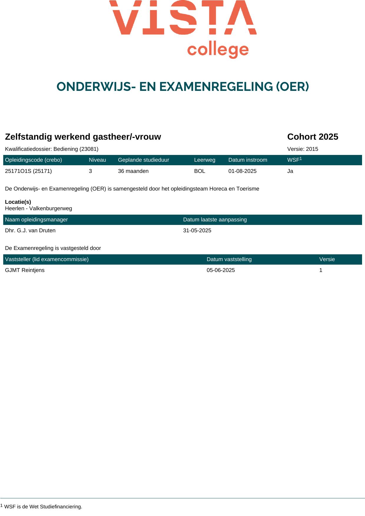 Zelfstandig werkend gastheer/-vrouw 25171O1S in cohort 2025-2026