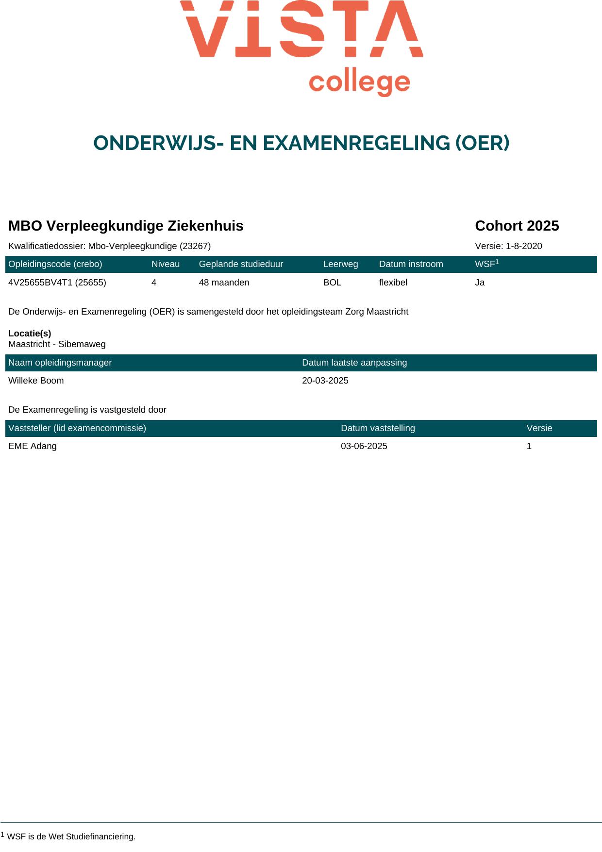 MBO Verpleegkundige Ziekenhuis 4V25655BV4T1 in cohort 2025-2026