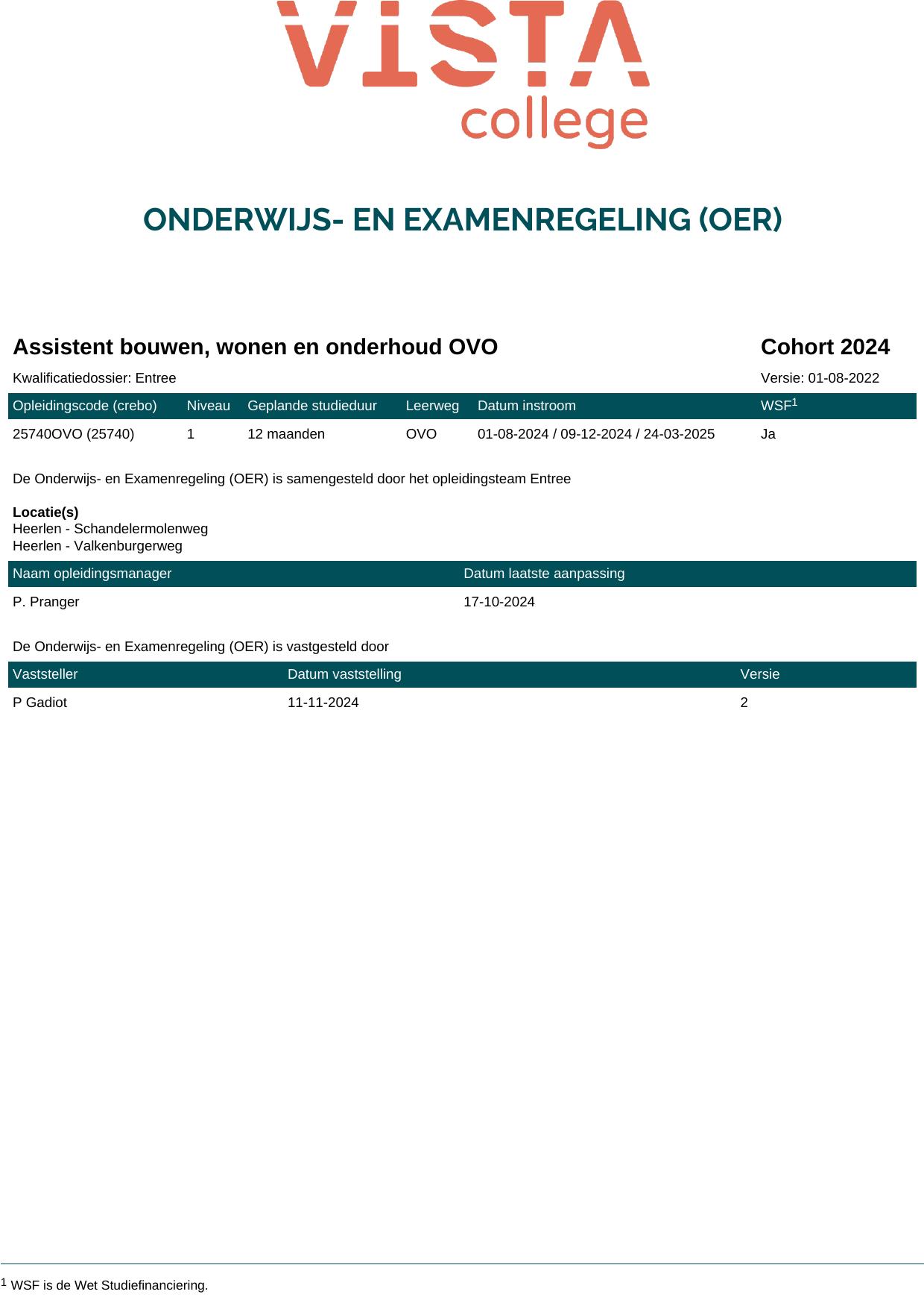 Assistent bouwen, wonen en onderhoud OVO 25740OVO in cohort 2024-2025