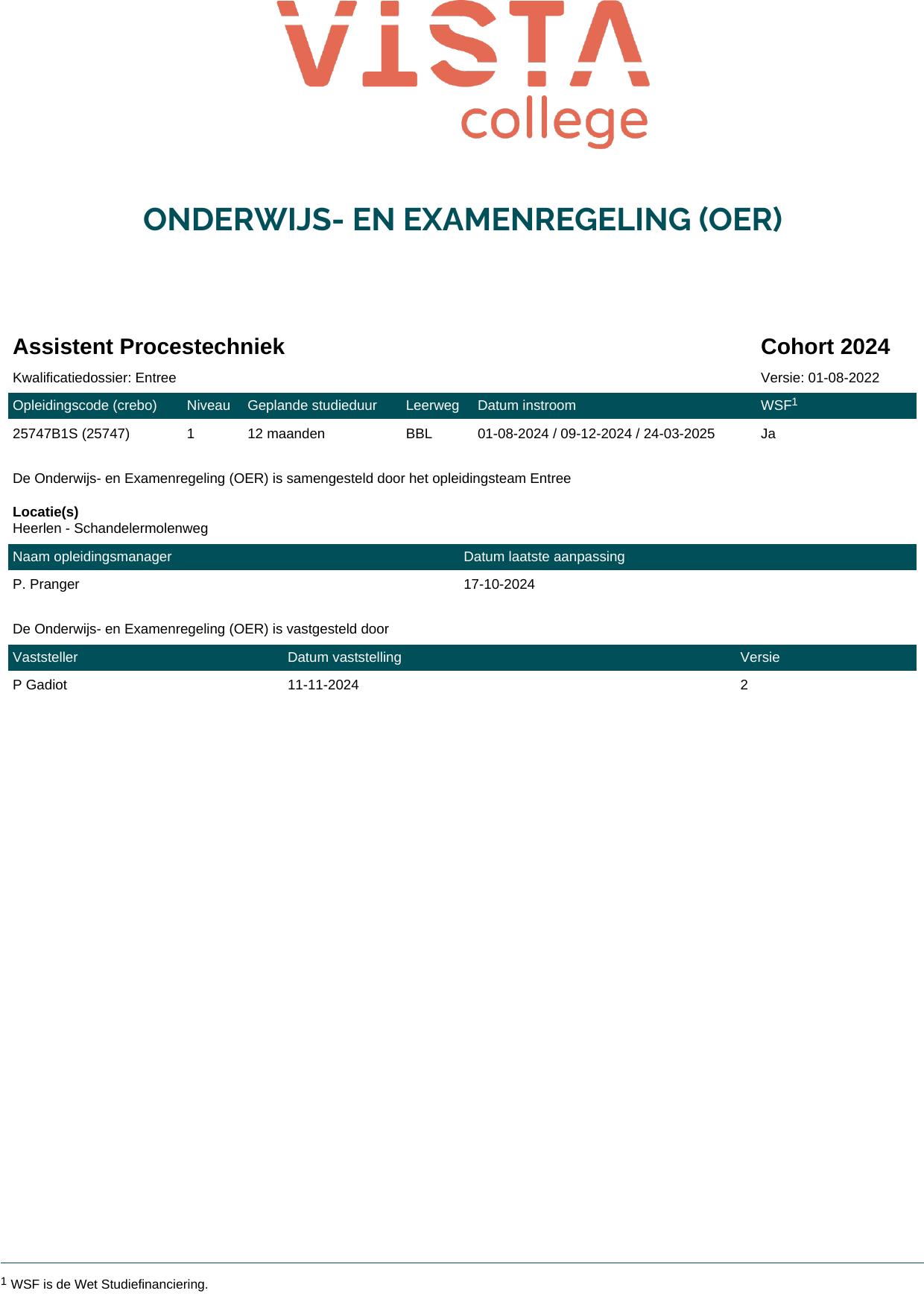 Assistent Procestechniek 25747B1S in cohort 2024-2025