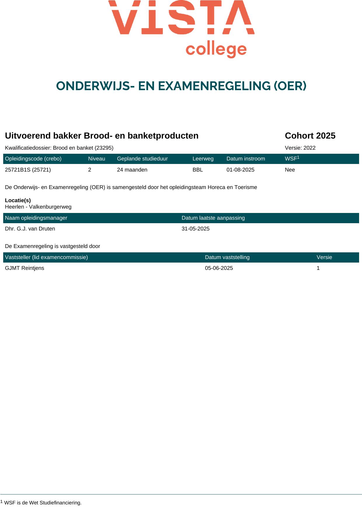 Uitvoerend bakker Banketproducten 25721B3S in cohort 2025-2026