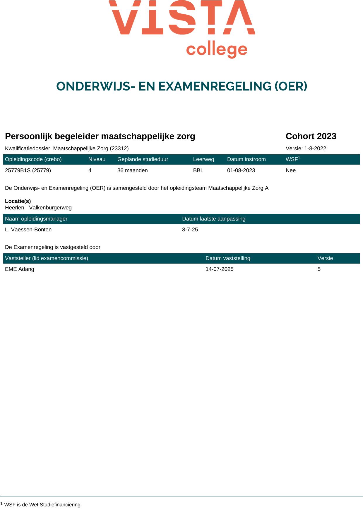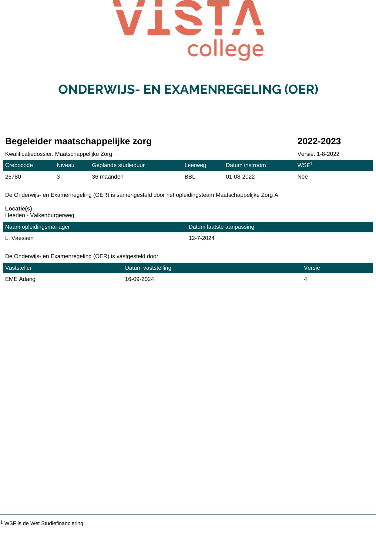 Begeleider maatschappelijke zorg 25780O1S in cohort 2022-2023