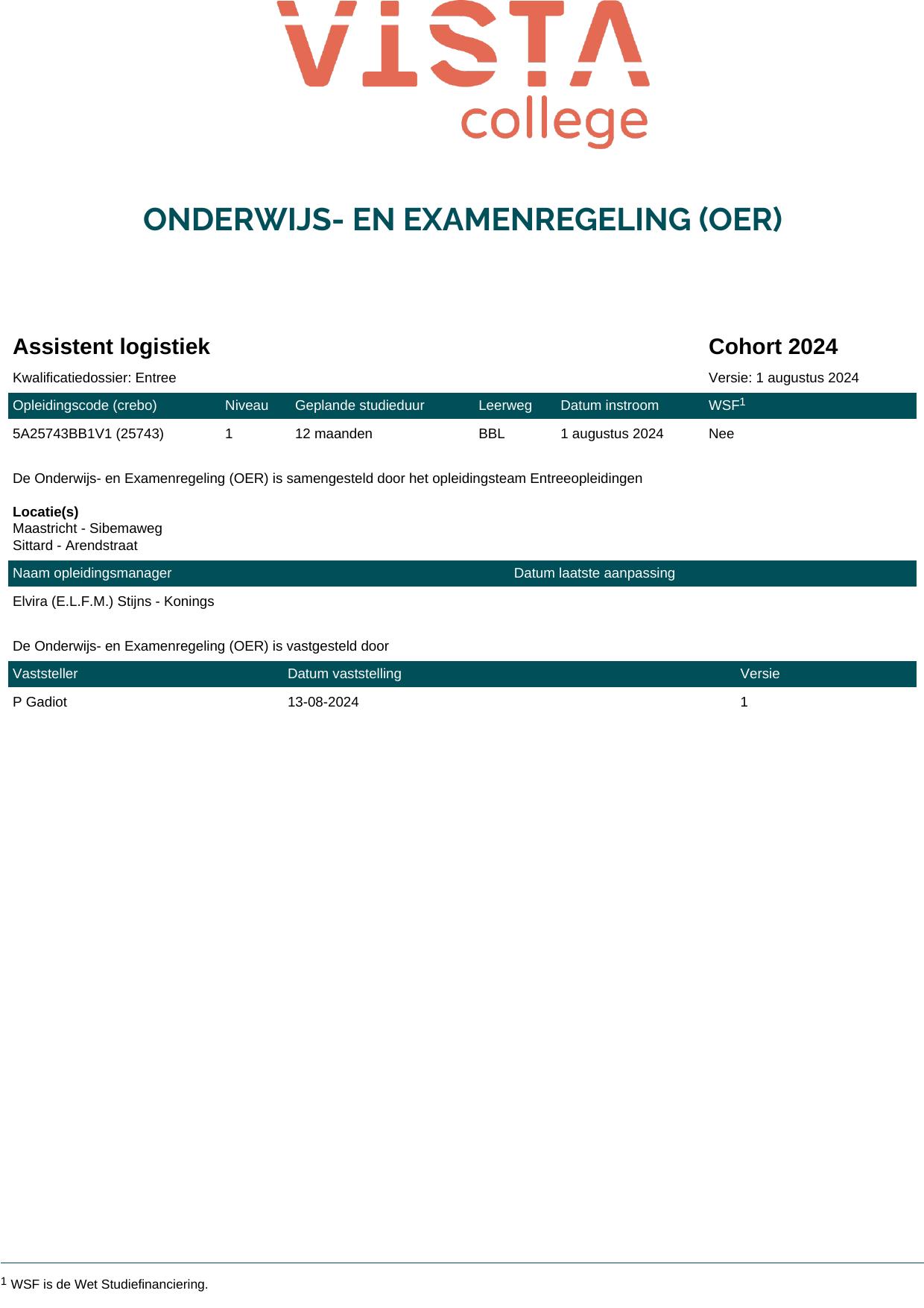 Assistent logistiek 5A25743BB1V1 in cohort 2024-2025