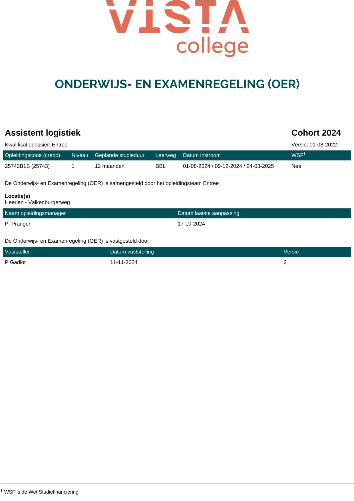 Assistent logistiek 25743B1S in cohort 2024-2025
