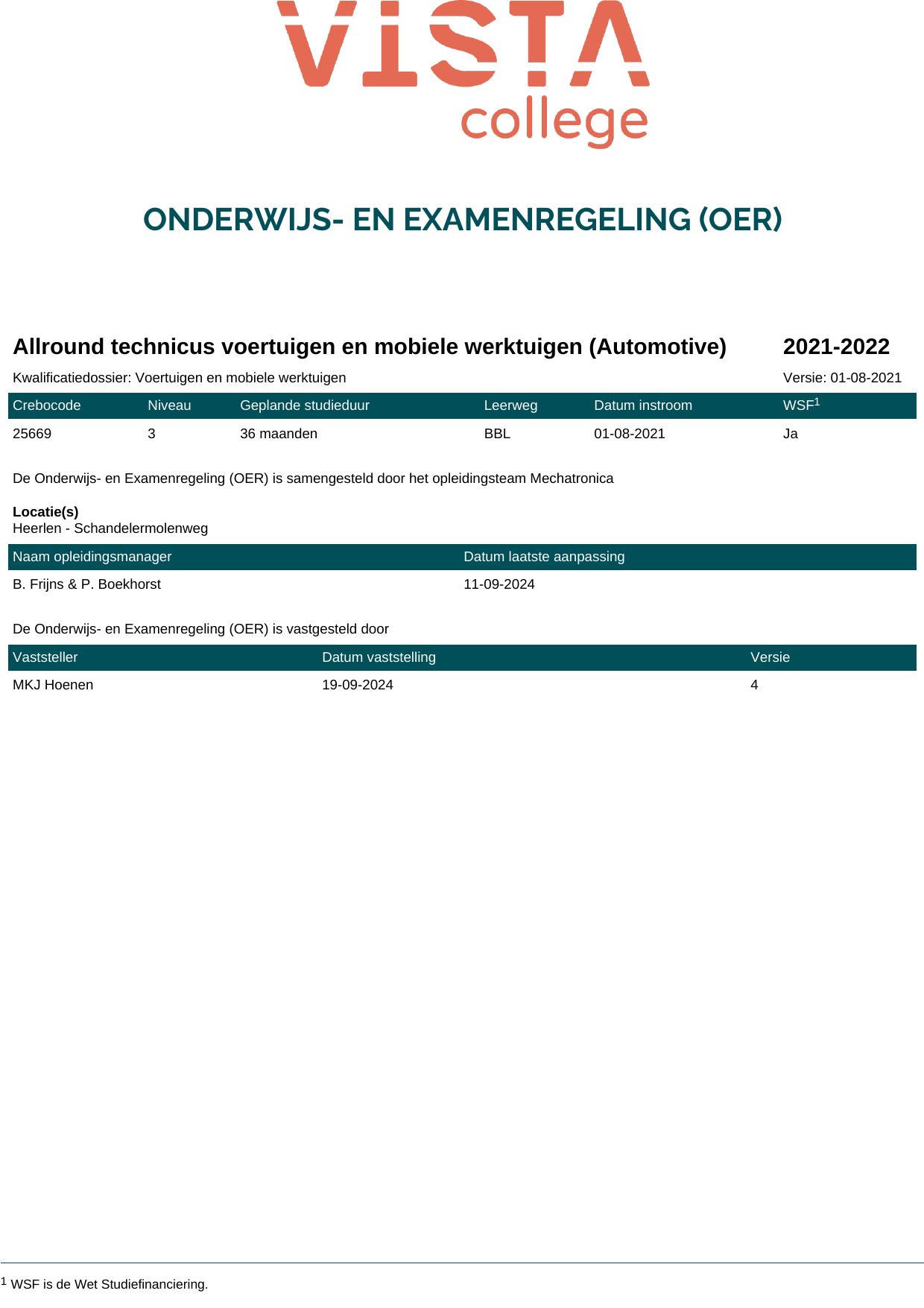 Allround technicus voertuigen en mobiele werktuigen (Automotive) 25669B1S in cohort 2021-2022
