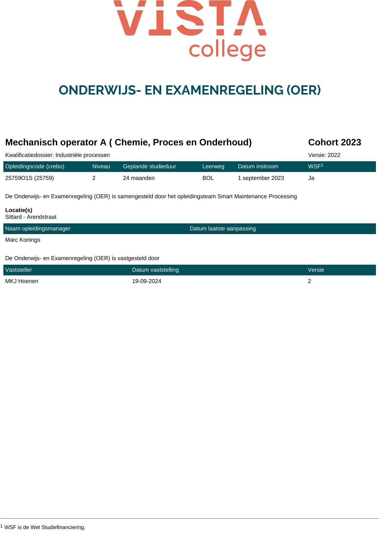 Mechanisch operator A ( Chemie, Proces en Onderhoud) 25759O1S in cohort 2023-2024