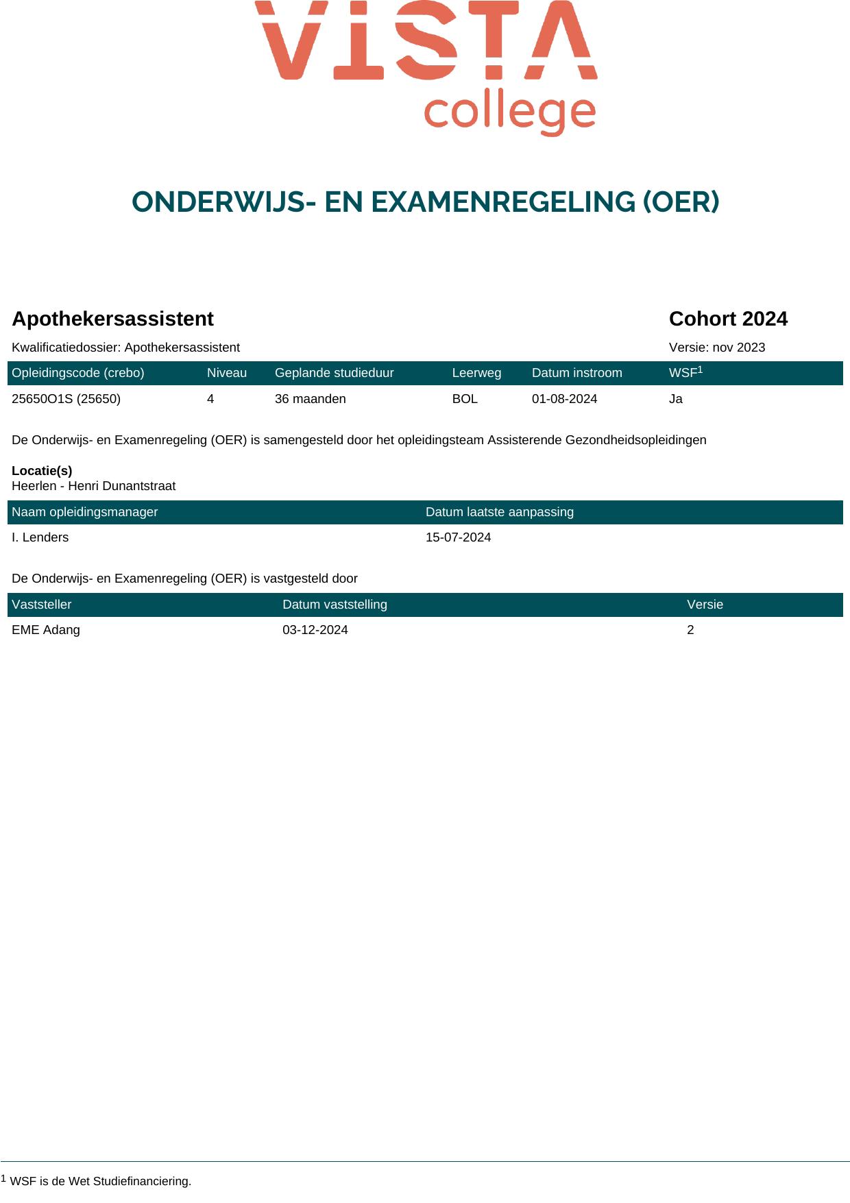 Apothekersassistent 25650O1S in cohort 2024-2025