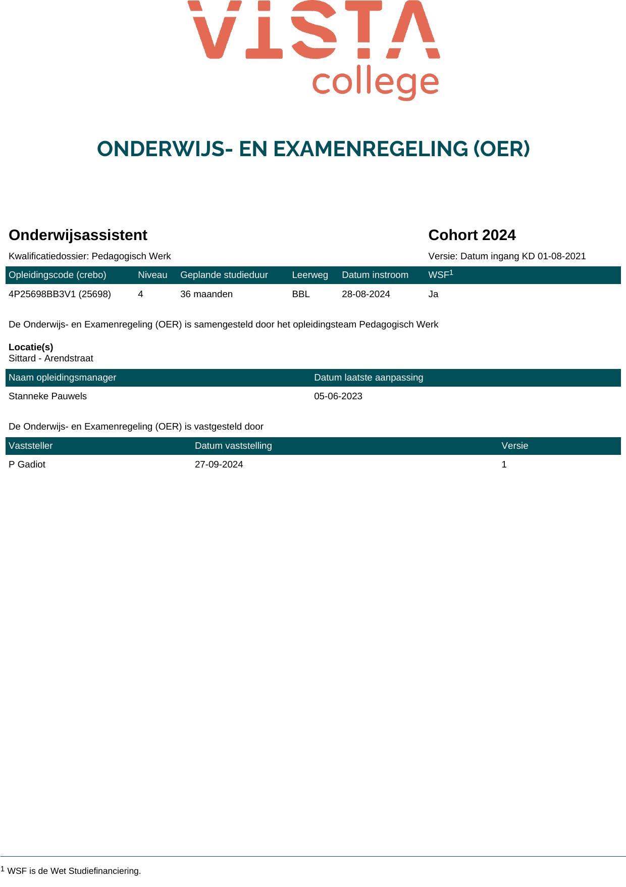 Onderwijsassistent 4P25698BB3V1 in cohort 2024-2025