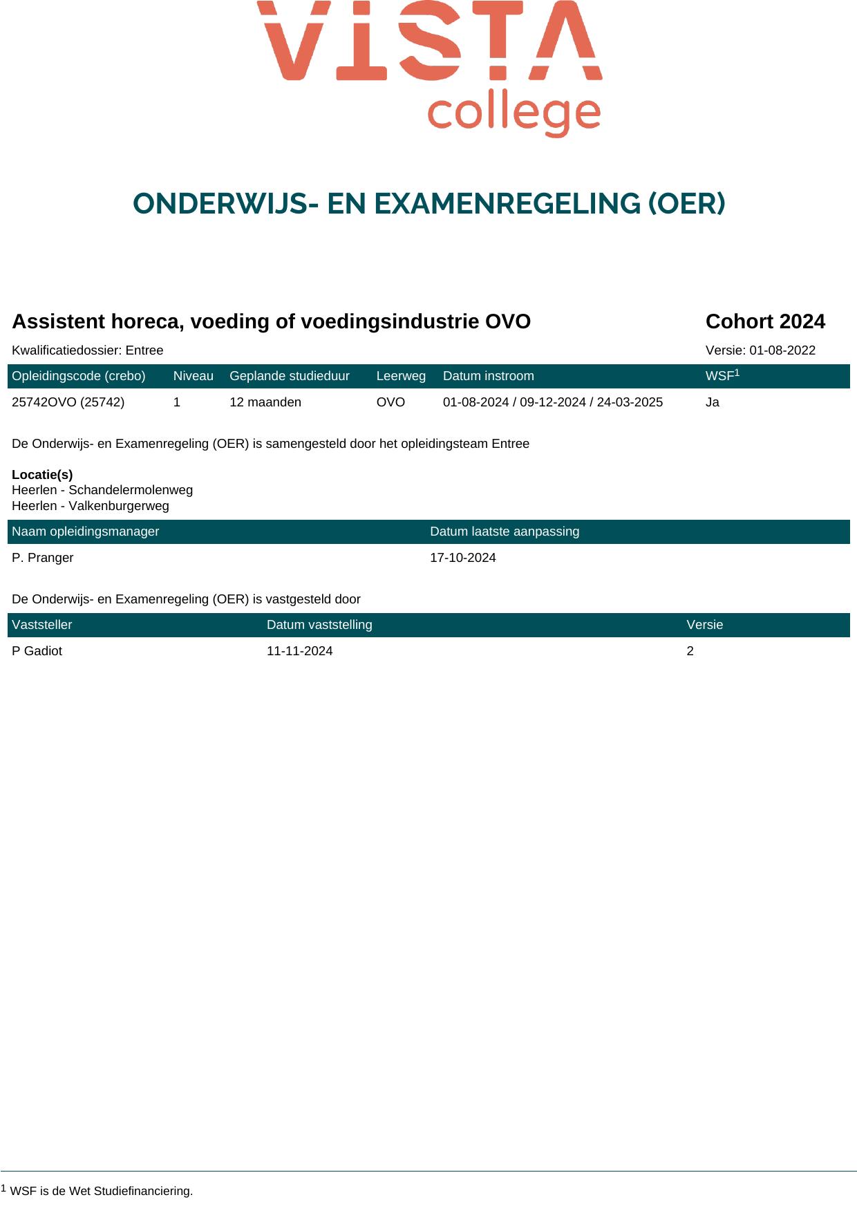 Assistent horeca, voeding of voedingsindustrie OVO 25742OVO in cohort 2024-2025