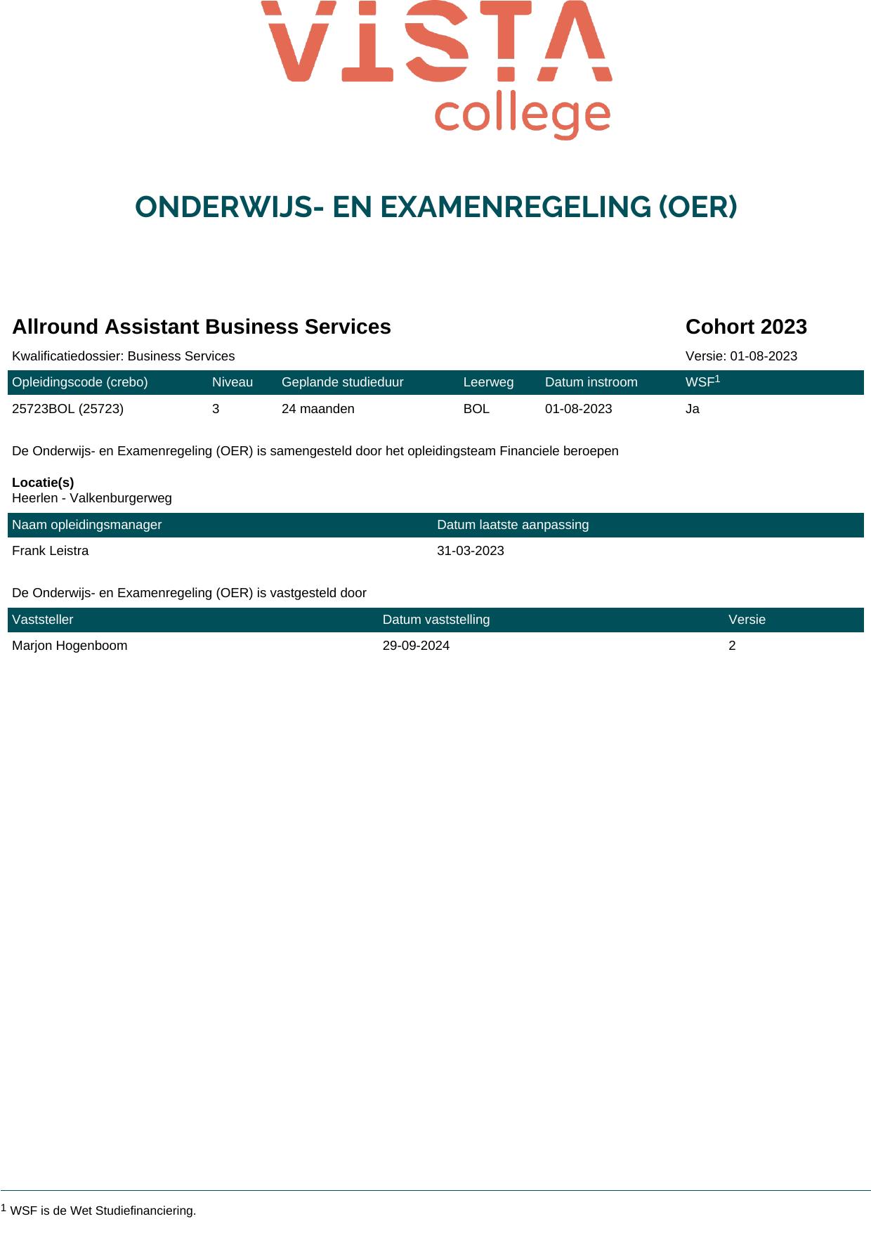 Allround Assistant Business Services 25723BOL in cohort 2023-2024