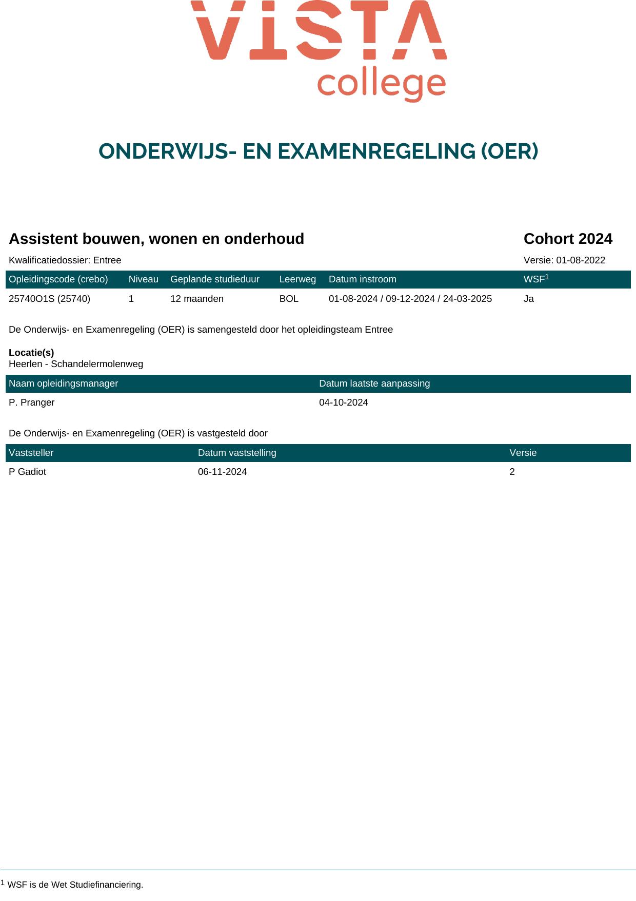 Assistent bouwen, wonen en onderhoud 25740O1S in cohort 2024-2025