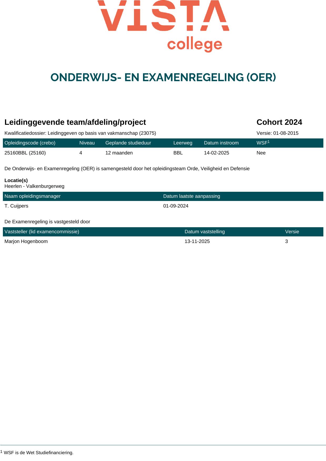 Leidinggevende team/afdeling/project 25160BBL in cohort 2024-2025