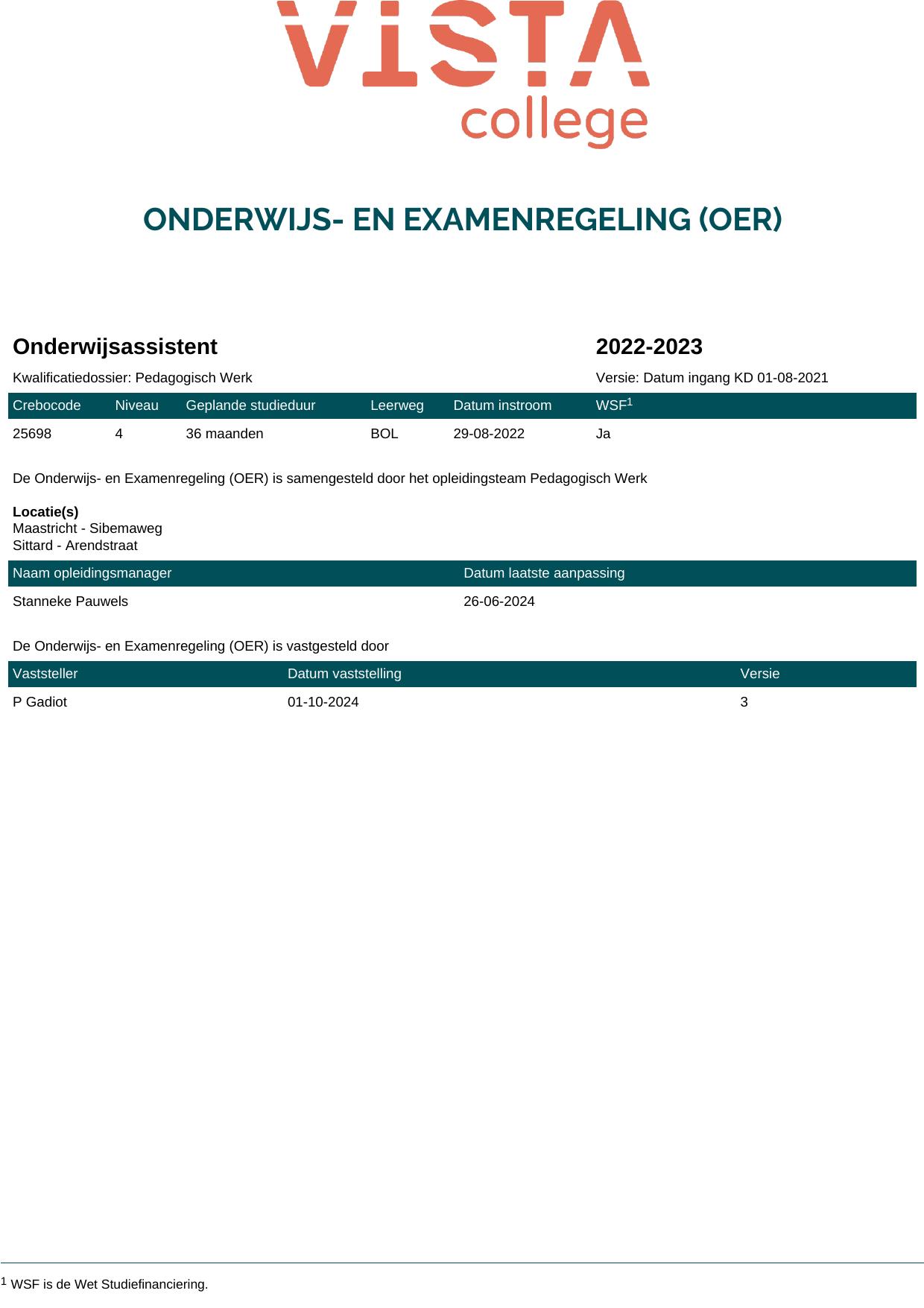 Onderwijsassistent 4P25698BV3V1 in cohort 2022-2023