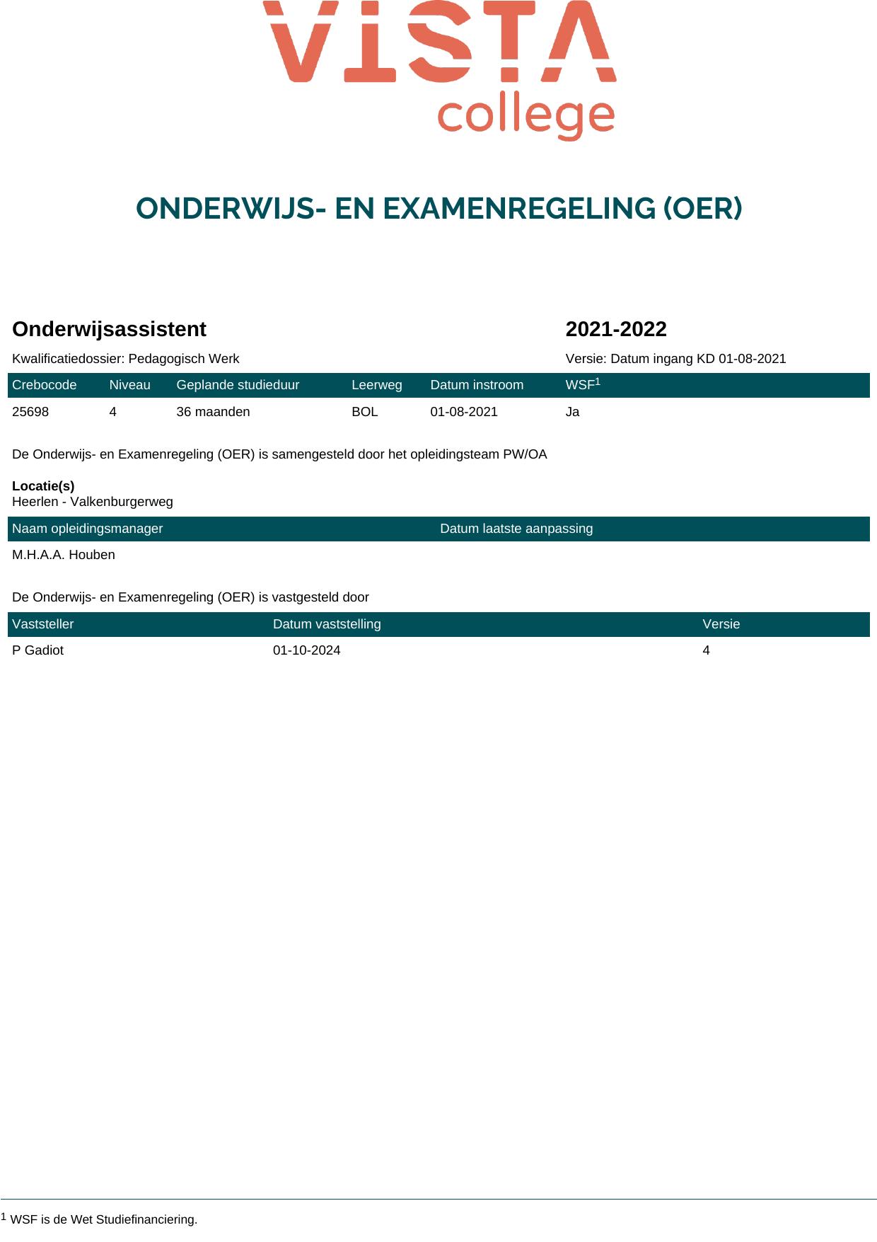 Onderwijsassistent 25698O1S in cohort 2021-2022