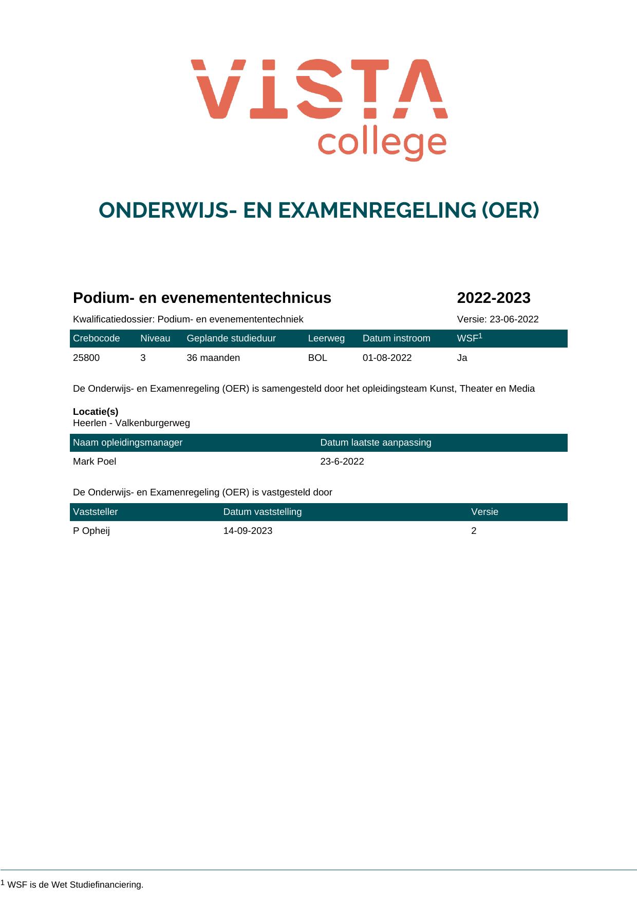 Podium- en evenemententechnicus 25800O1S in cohort 2022-2023