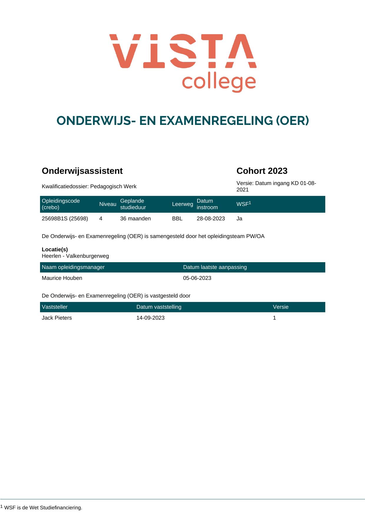 Onderwijsassistent 25698B1S in cohort 2023-2024