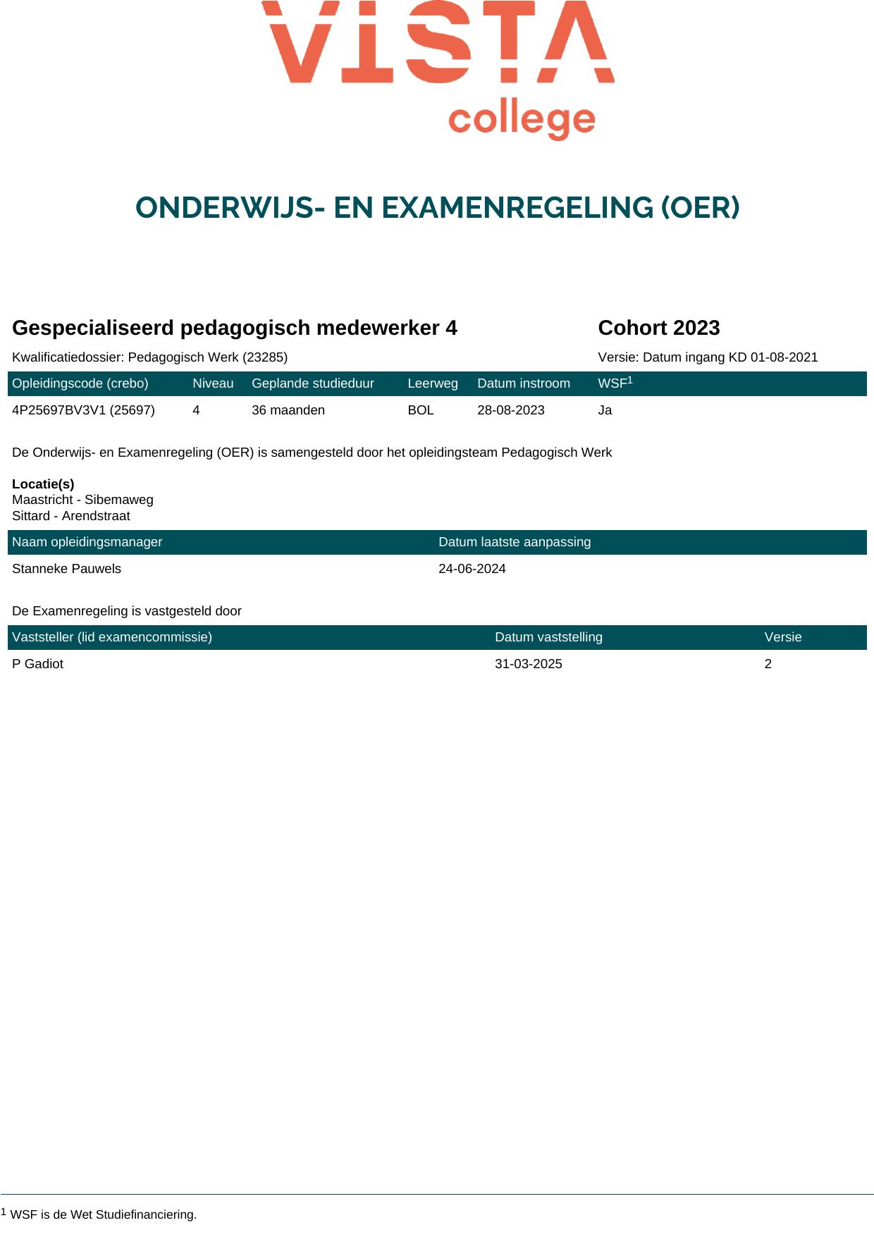 Gespecialiseerd pedagogisch medewerker 4 4P25697BV3V1 in cohort 2023-2024