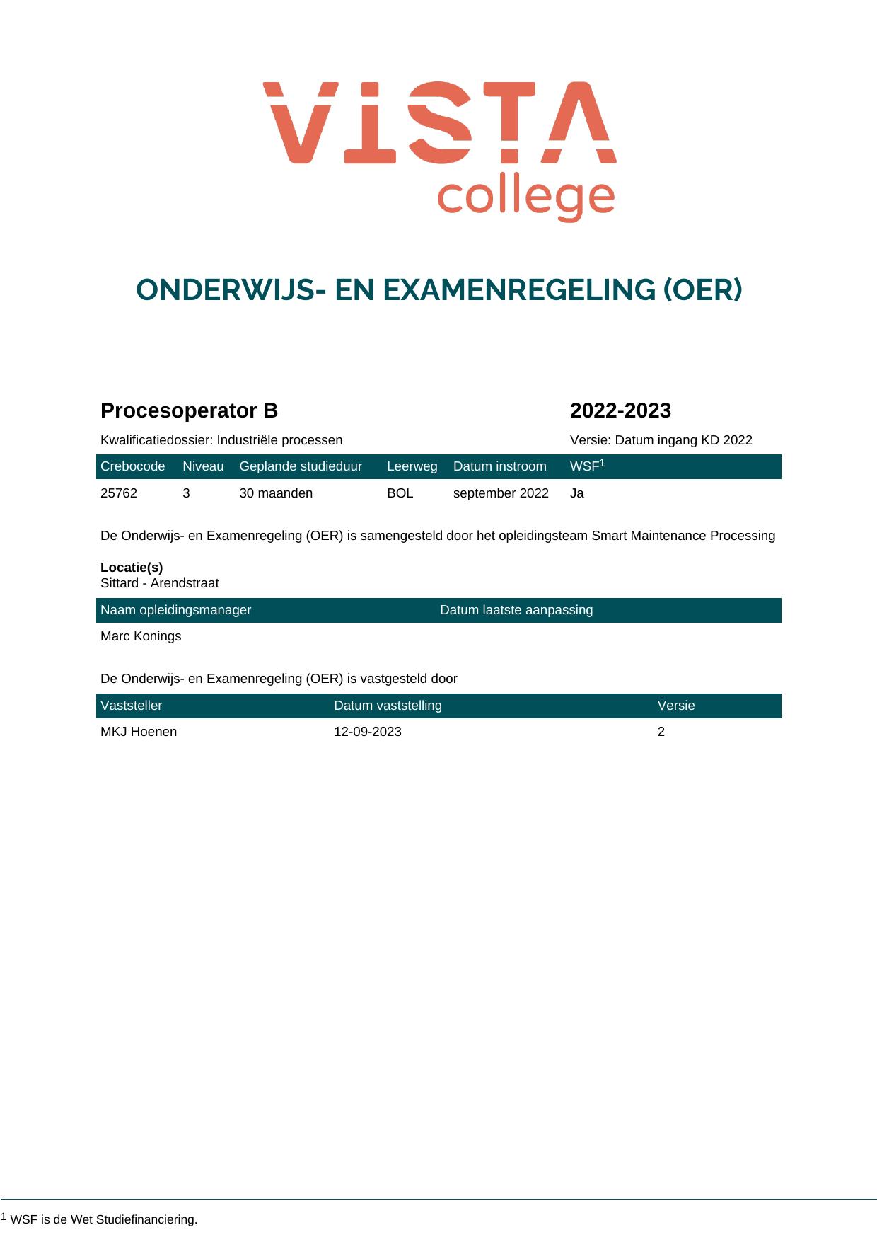 Procesoperator B 25762O1S in cohort 2022-2023