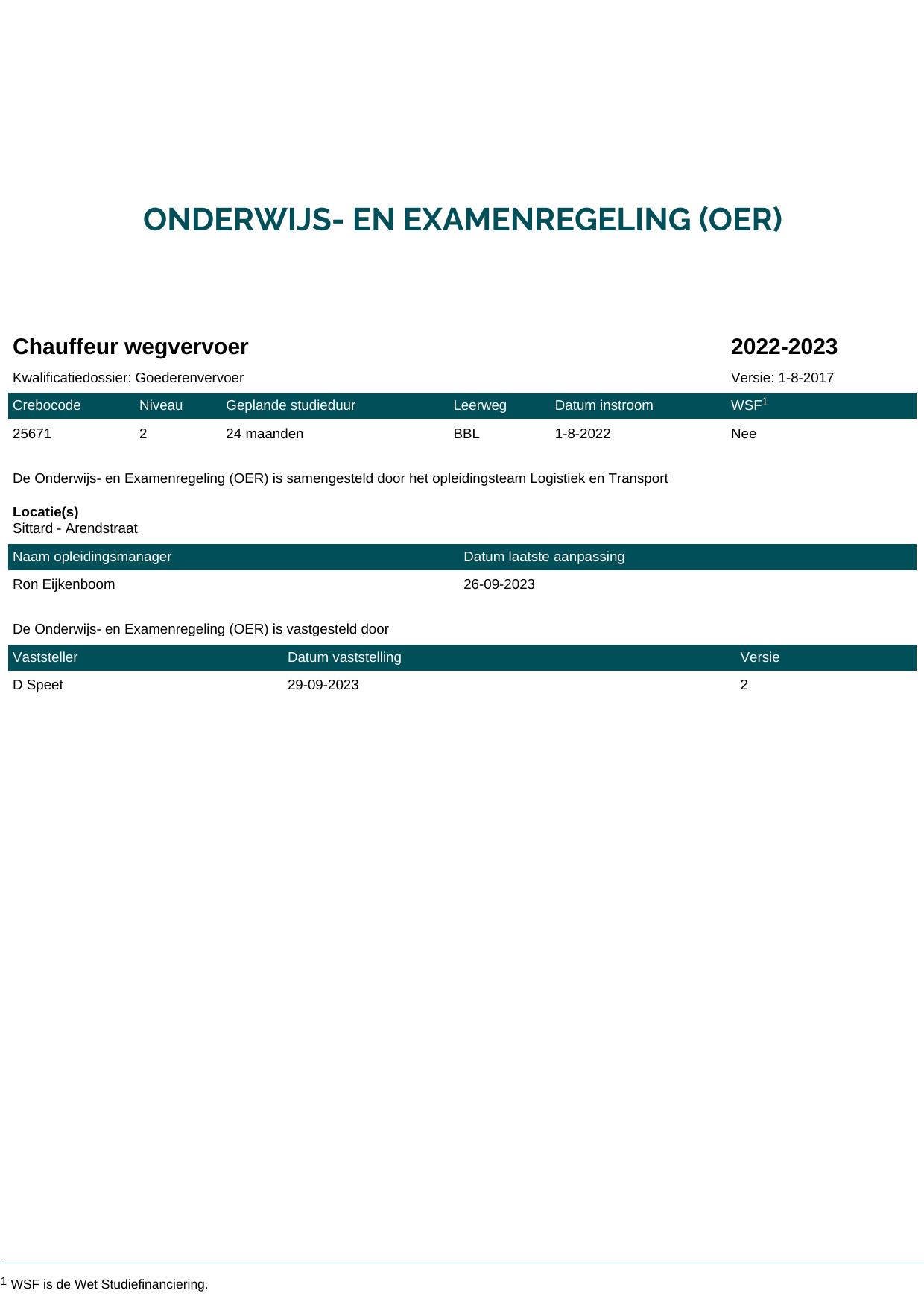 Chauffeur wegvervoer 25671BBL in cohort 2022-2023