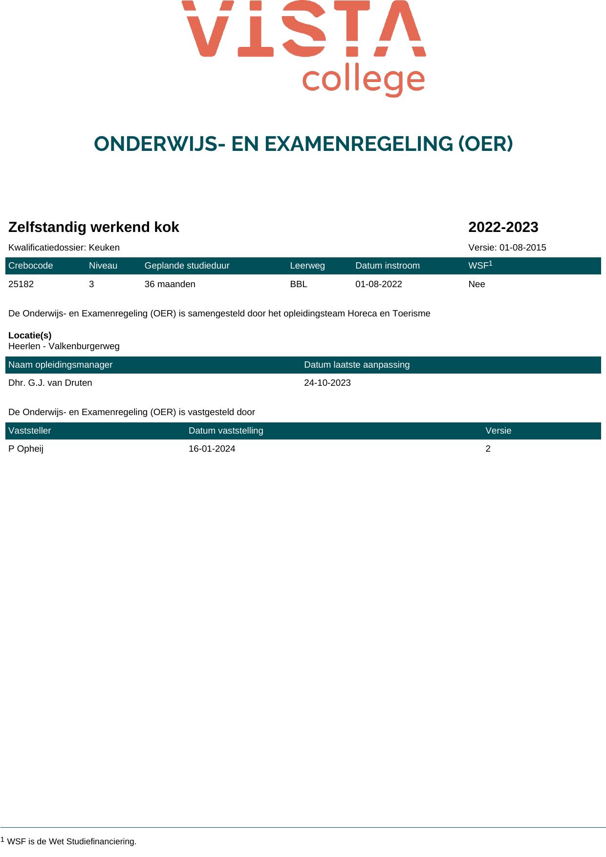 Zelfstandig werkend kok 25182B1S in cohort 2022-2023