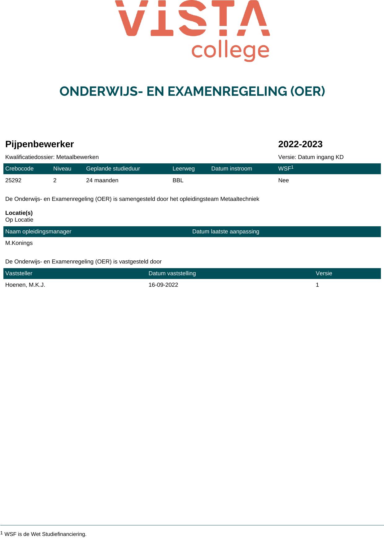 Pijpenbewerker 25292B1S in cohort 2022-2023