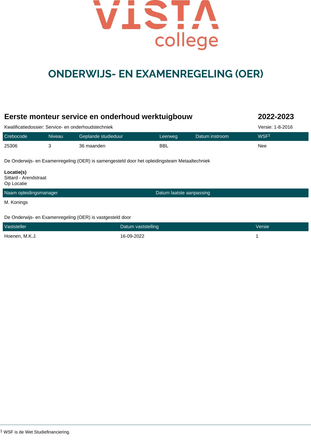 Eerste monteur service en onderhoud werktuigbouw 25306B1S in cohort 2022-2023