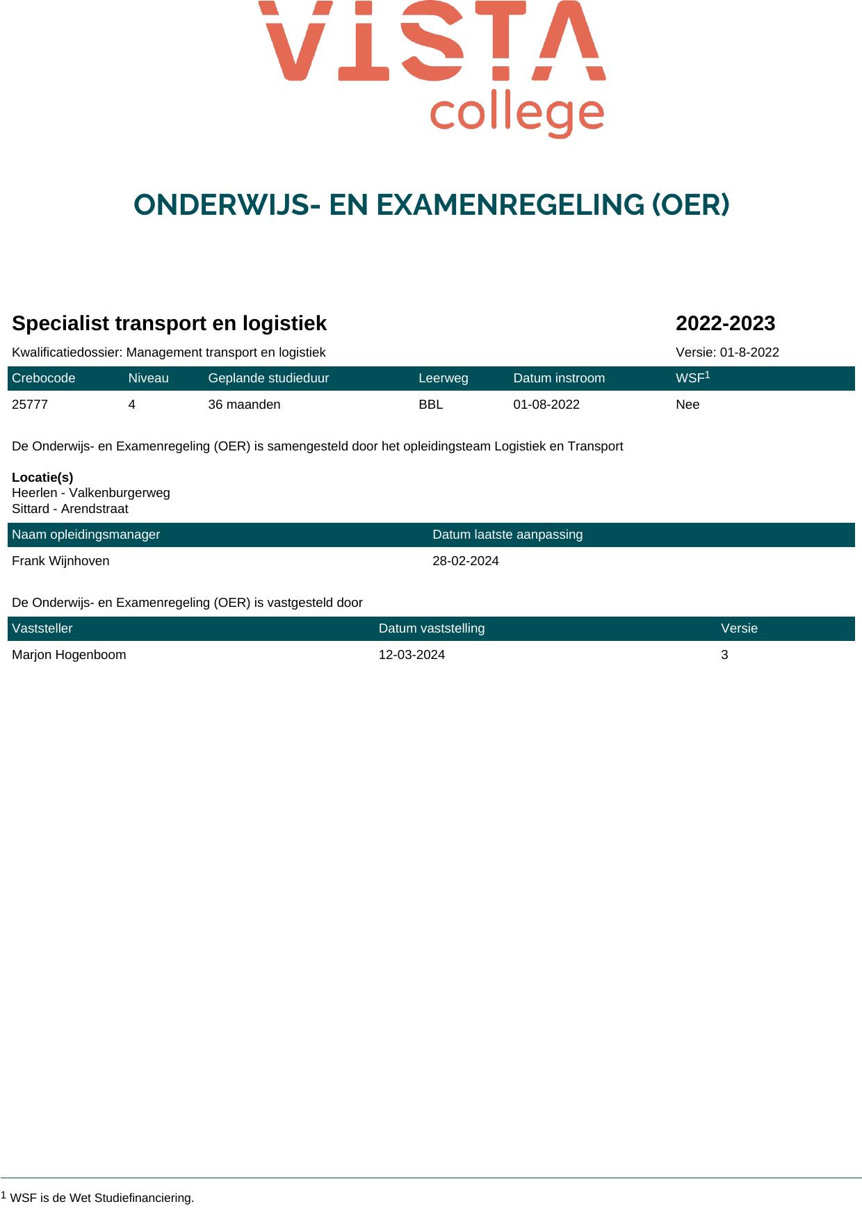 Specialist transport en logistiek 25777BBL in cohort 2022-2023