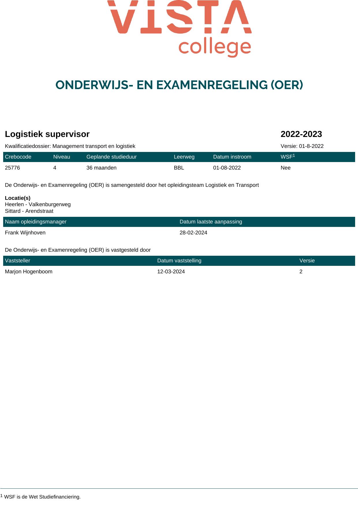 Logistiek supervisor 25776BBL in cohort 2022-2023