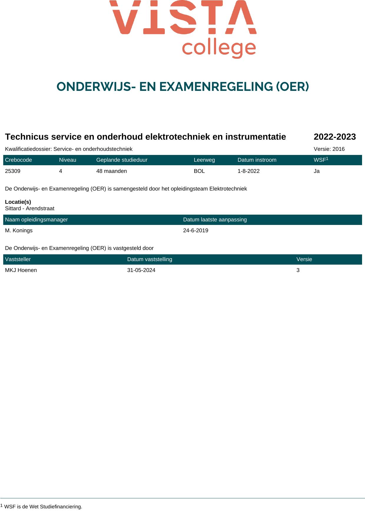 Technicus service en onderhoud elektrotechniek en instrumentatie 25309O1S in cohort 2022-2023