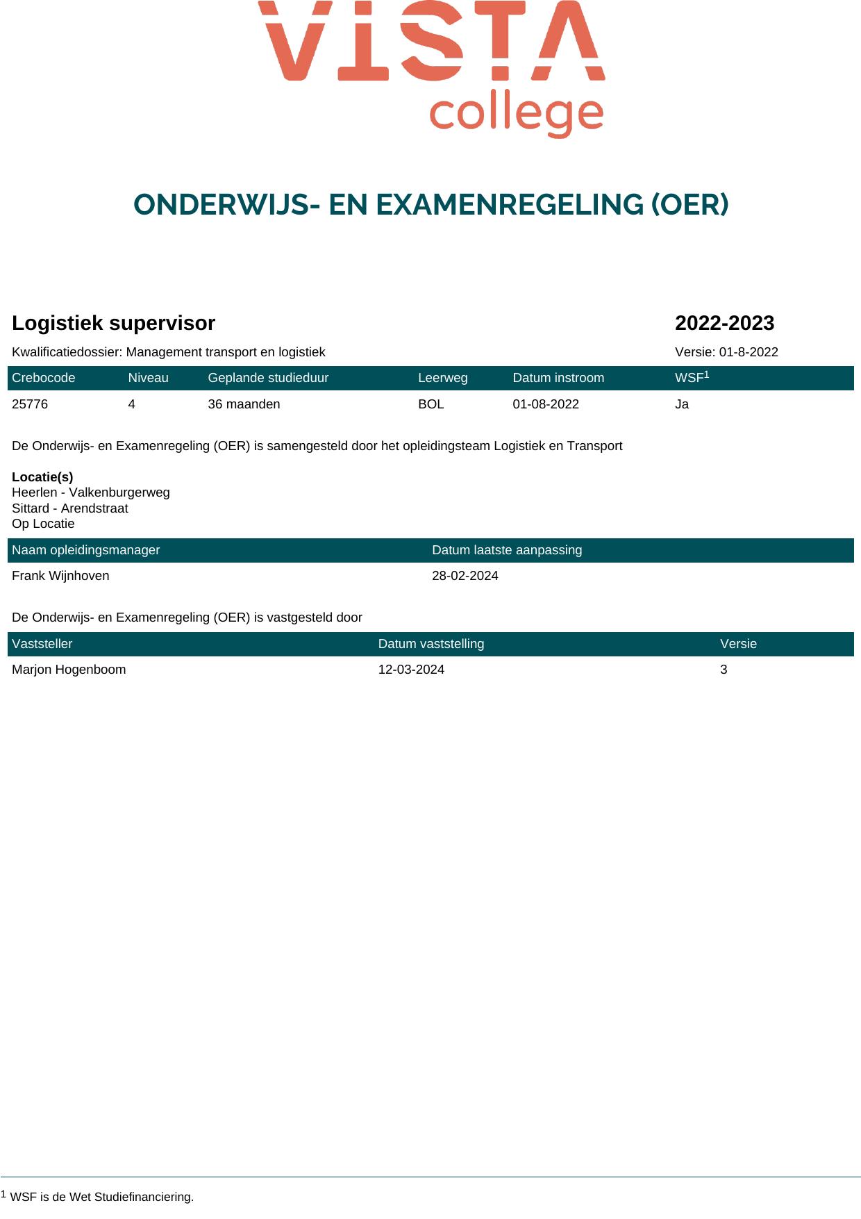 Logistiek supervisor 25776BOL in cohort 2022-2023