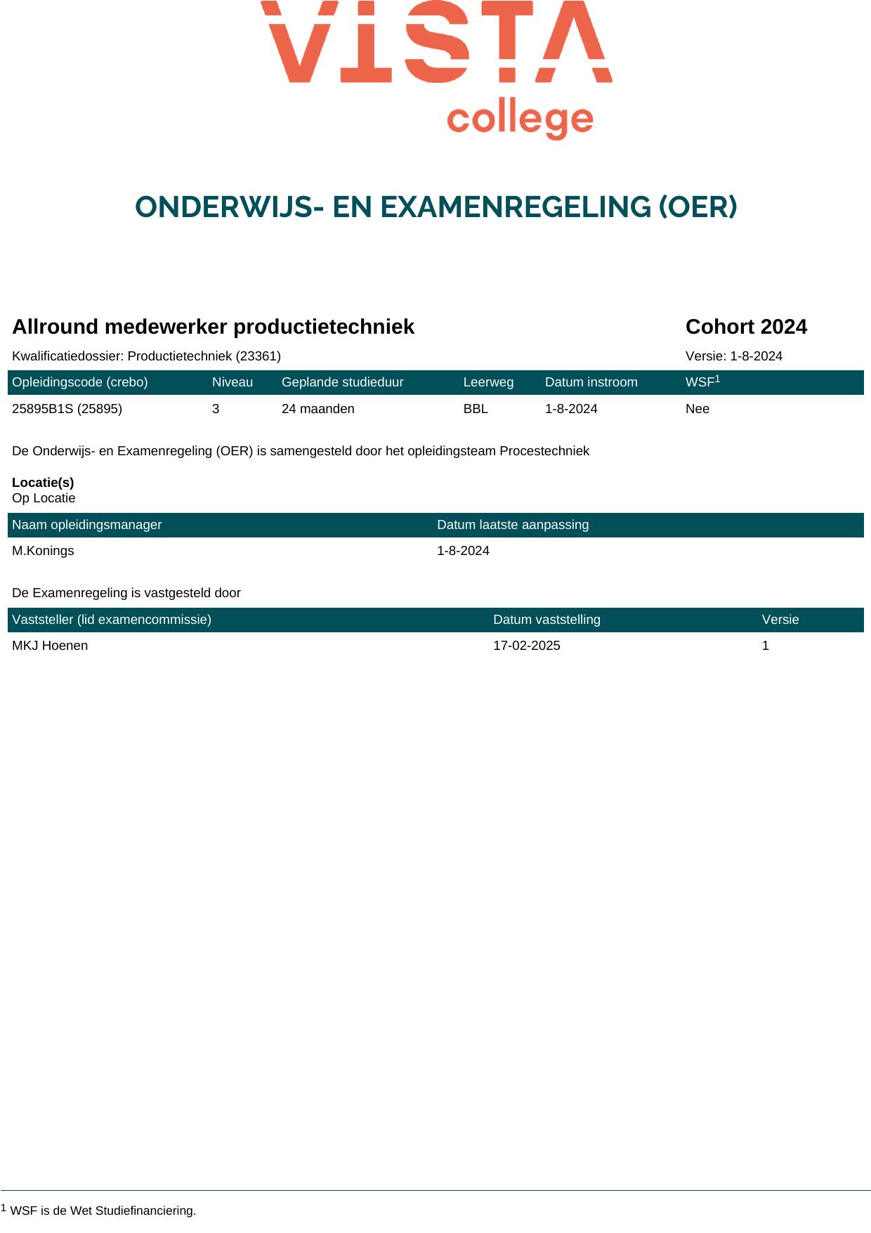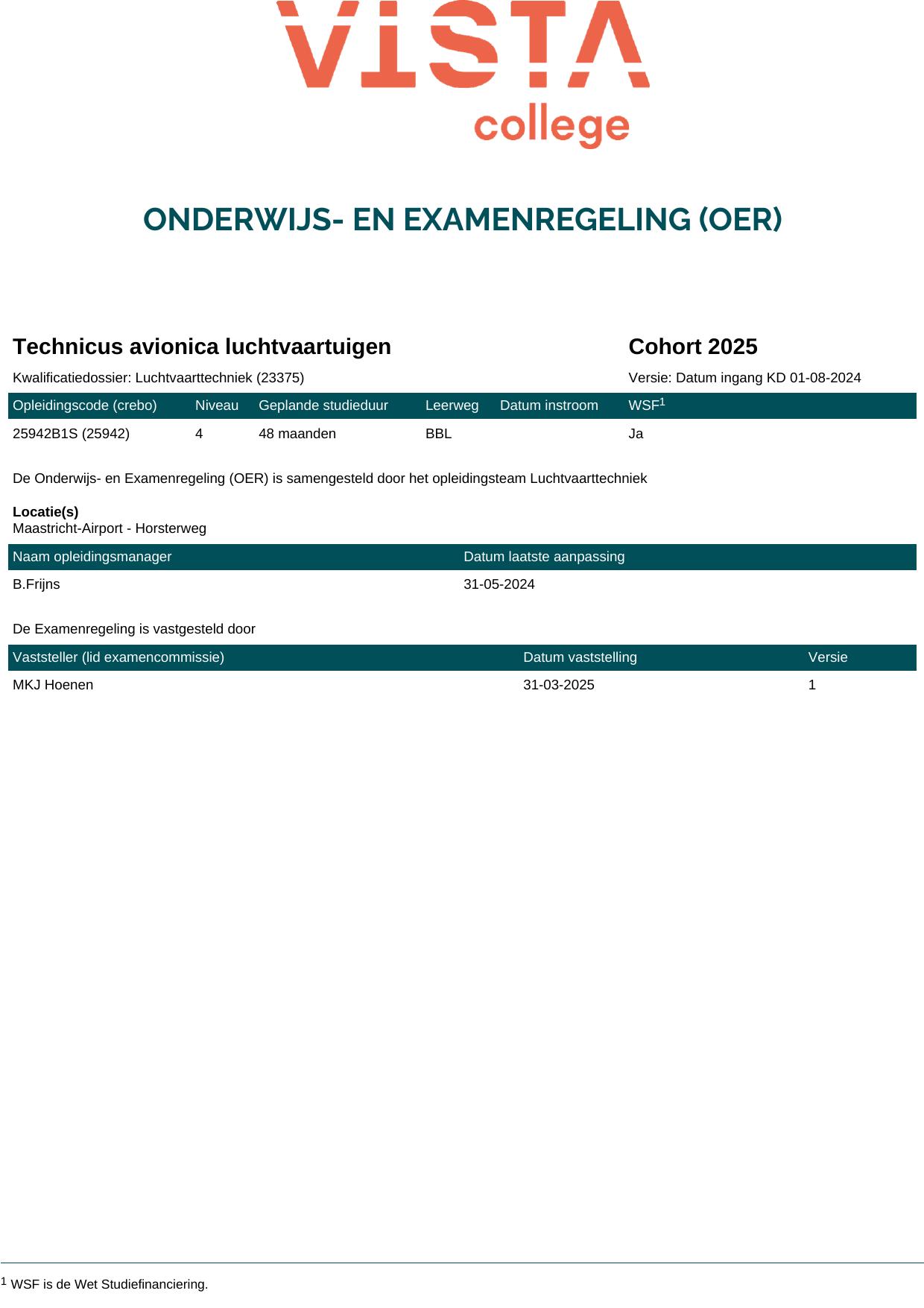 Eerste monteur luchtvaartuigen 25938O1S in cohort 2025-2026