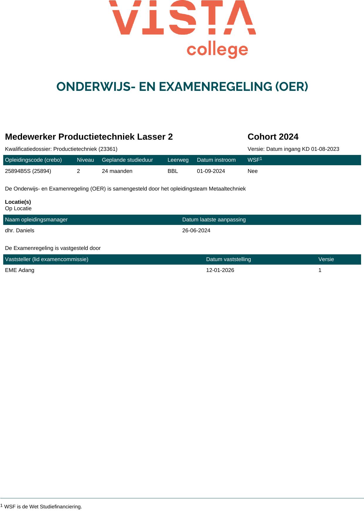 Medewerker Productietechniek Lasser 2 25894B5S in cohort 2024-2025