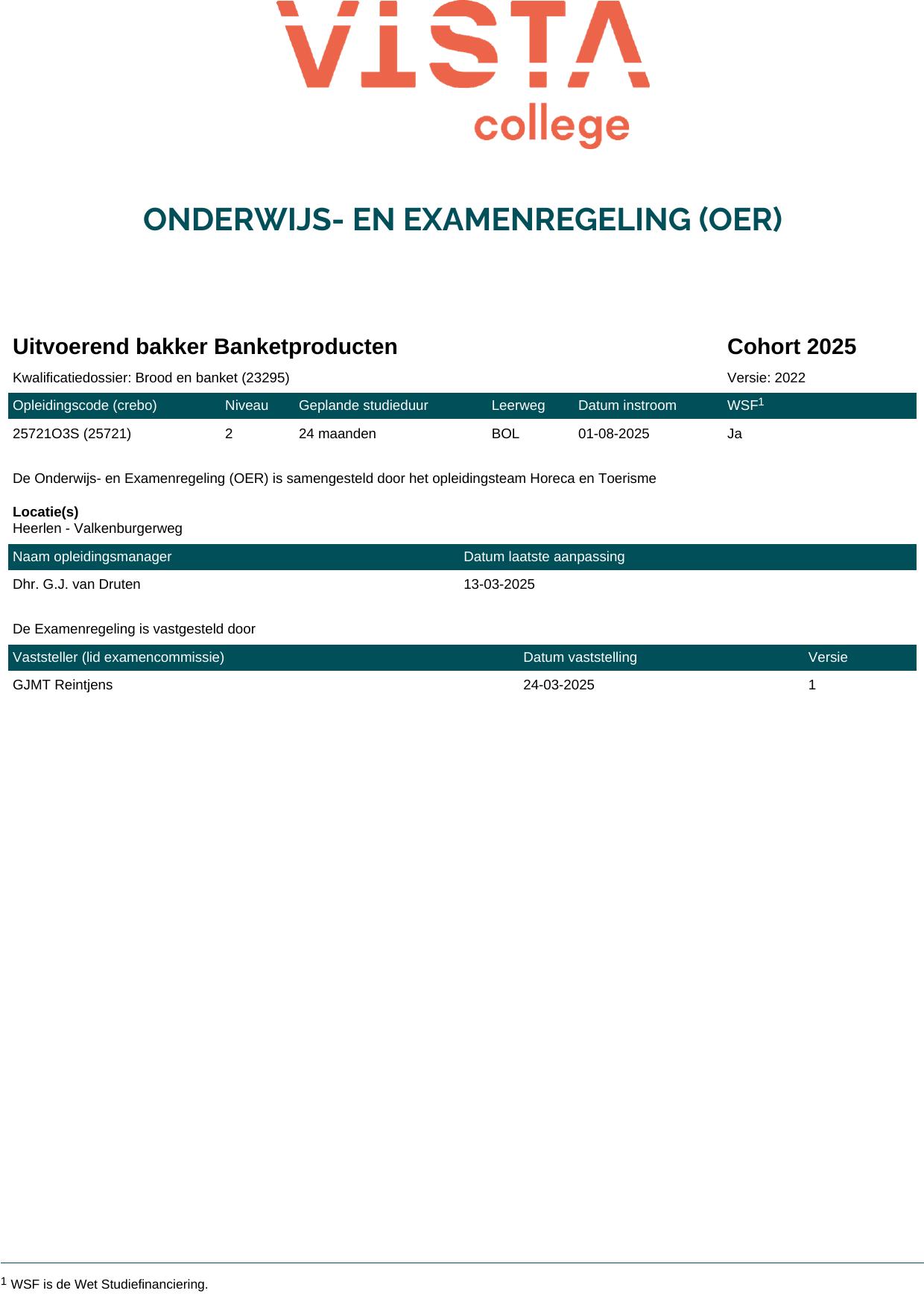 Uitvoerend bakker Banketproducten 25721O3S in cohort 2025-2026