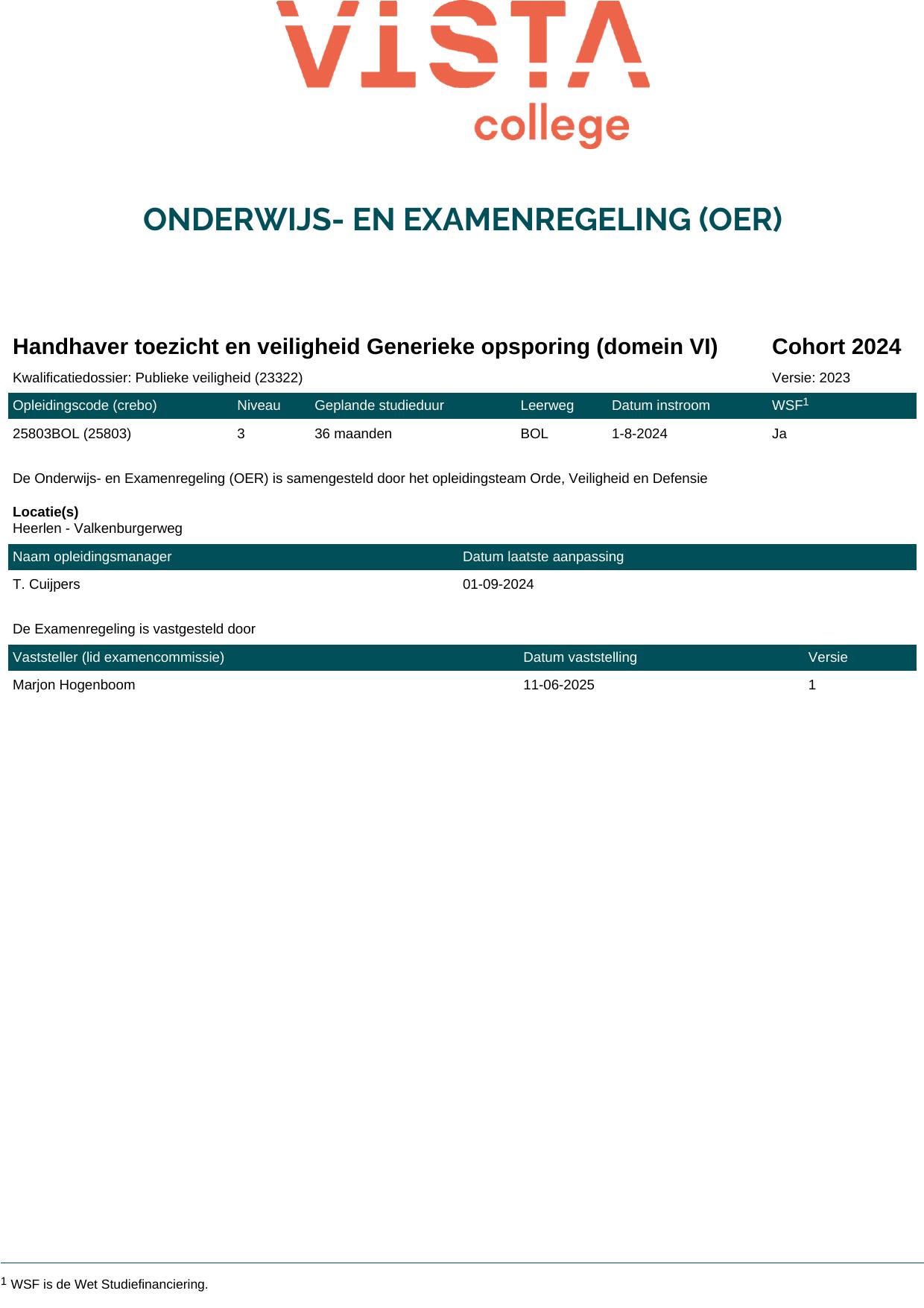 Handhaver toezicht en veiligheid Generieke opsporing (domein VI) 25803BOL in cohort 2024-2025