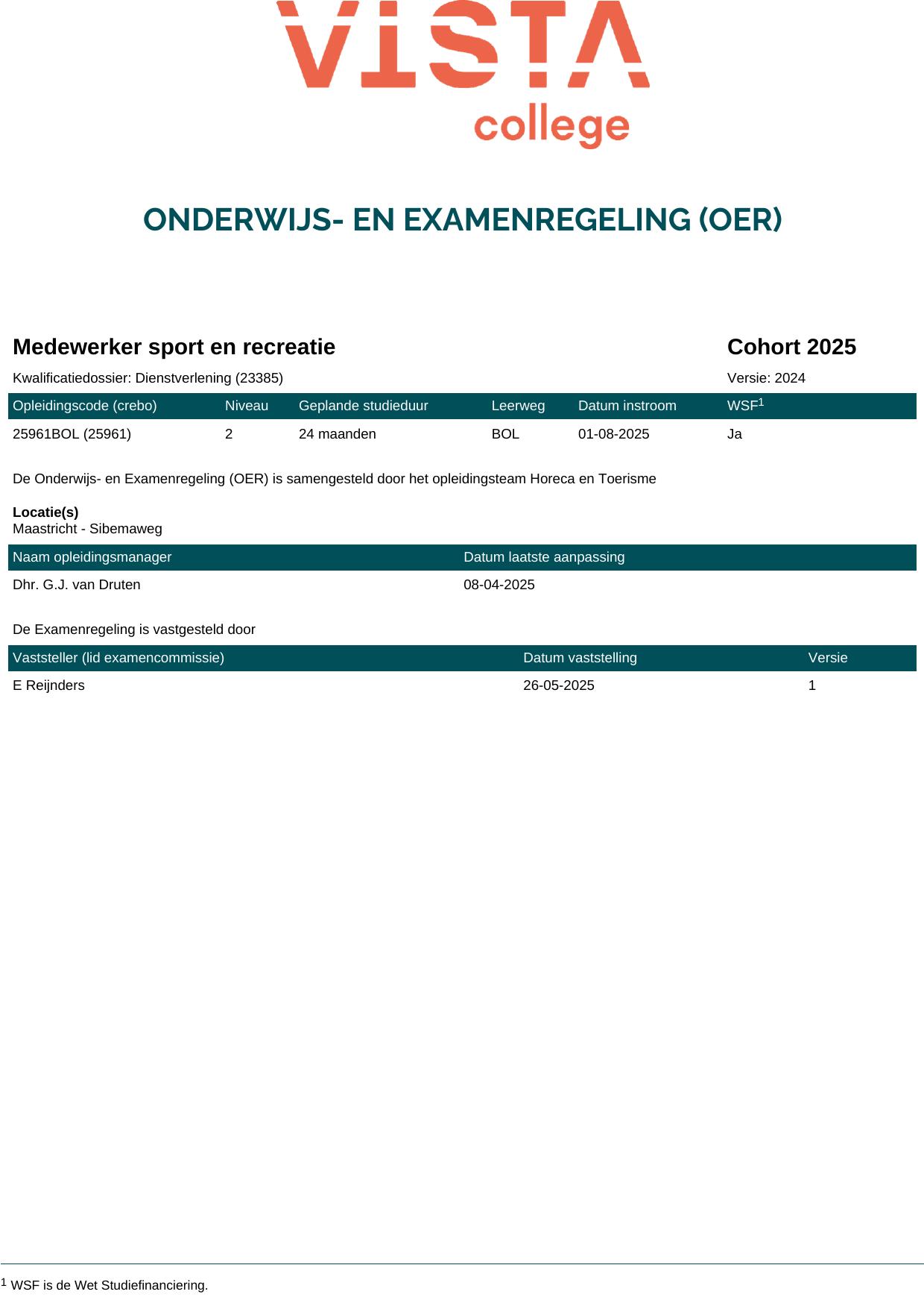 Medewerker sport en recreatie 25961BOL in cohort 2025-2026