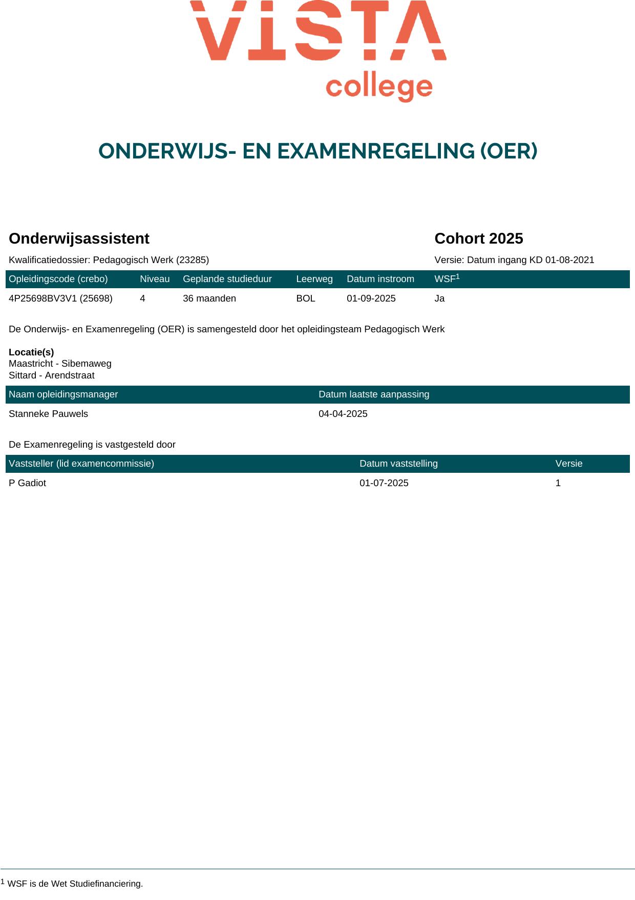 Onderwijsassistent 4P25698BV3V1 in cohort 2025-2026