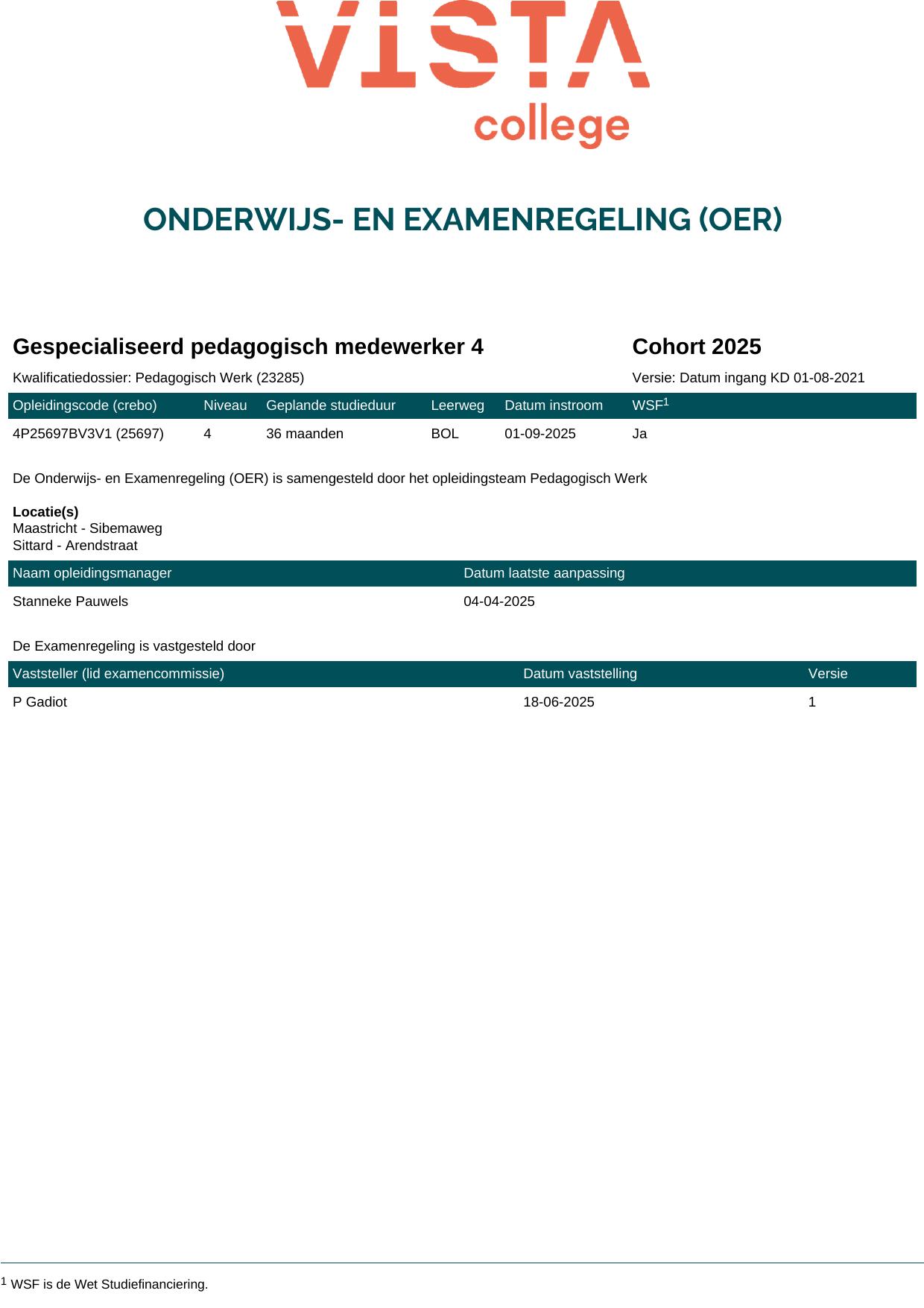 Gespecialiseerd pedagogisch medewerker 4 4P25697BV3V1 in cohort 2025-2026