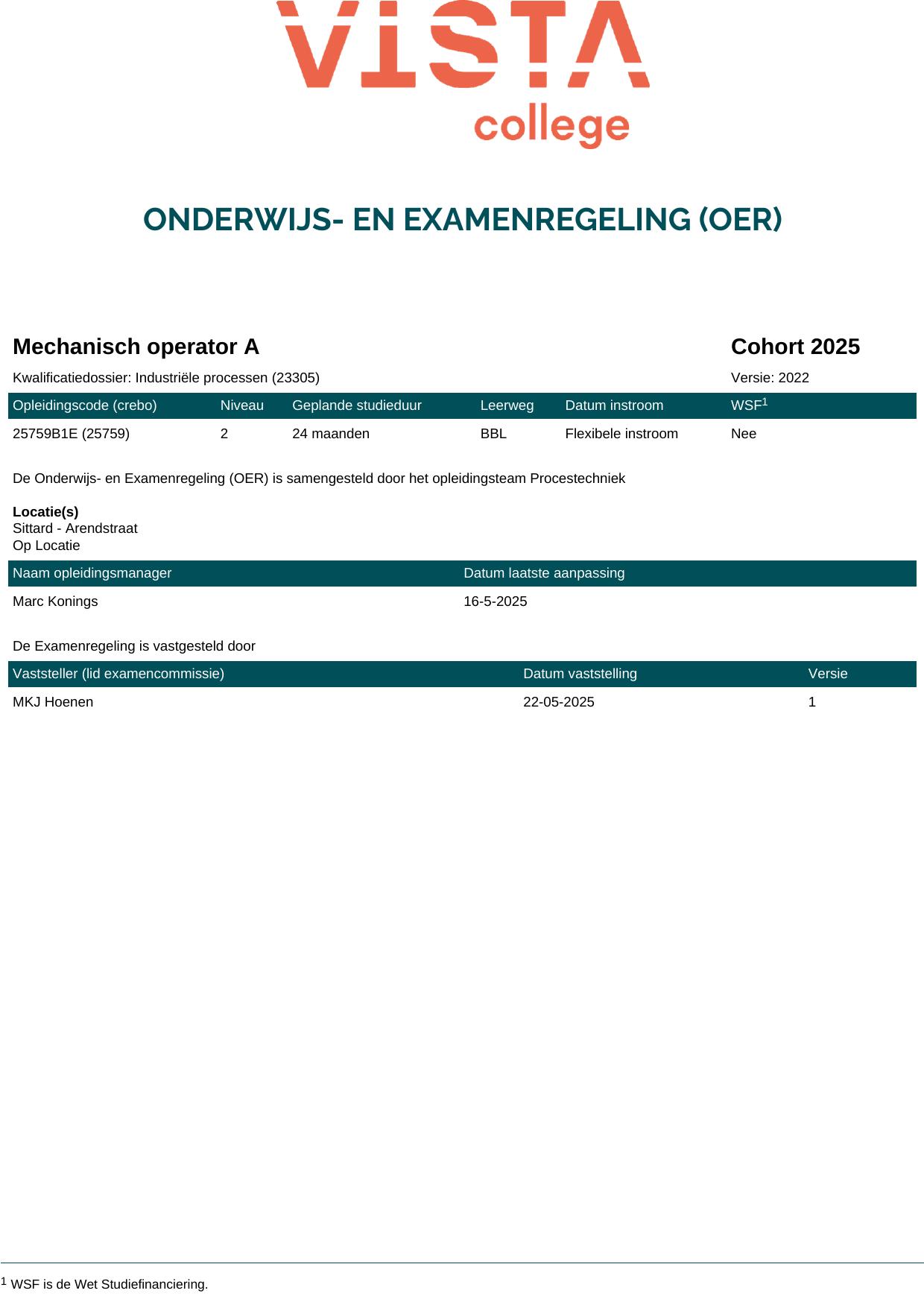Mechanisch operator A 25759B1E in cohort 2025-2026