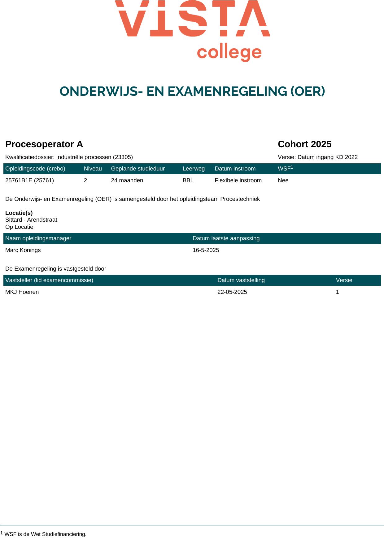 Procesoperator A 25761B1E in cohort 2025-2026