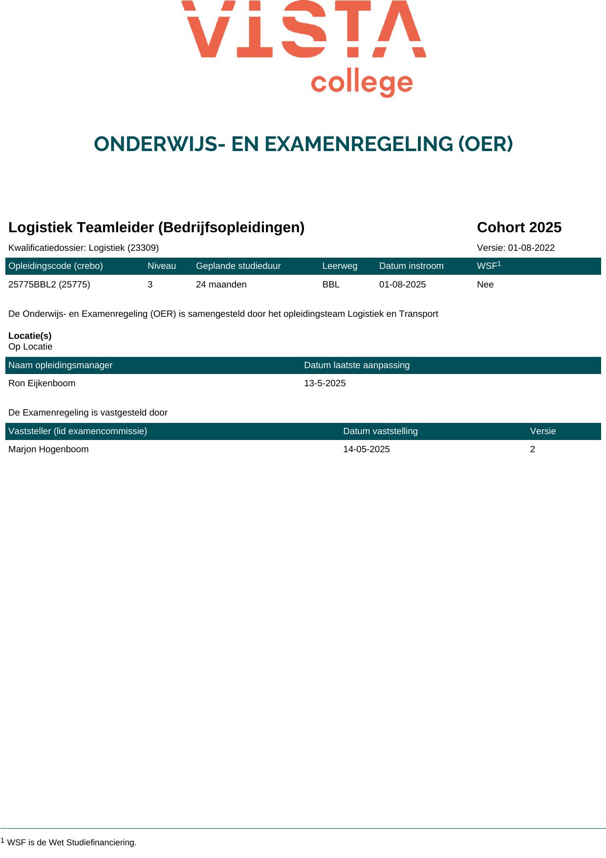 Logistiek teamleider 25775BBL1 in cohort 2025-2026